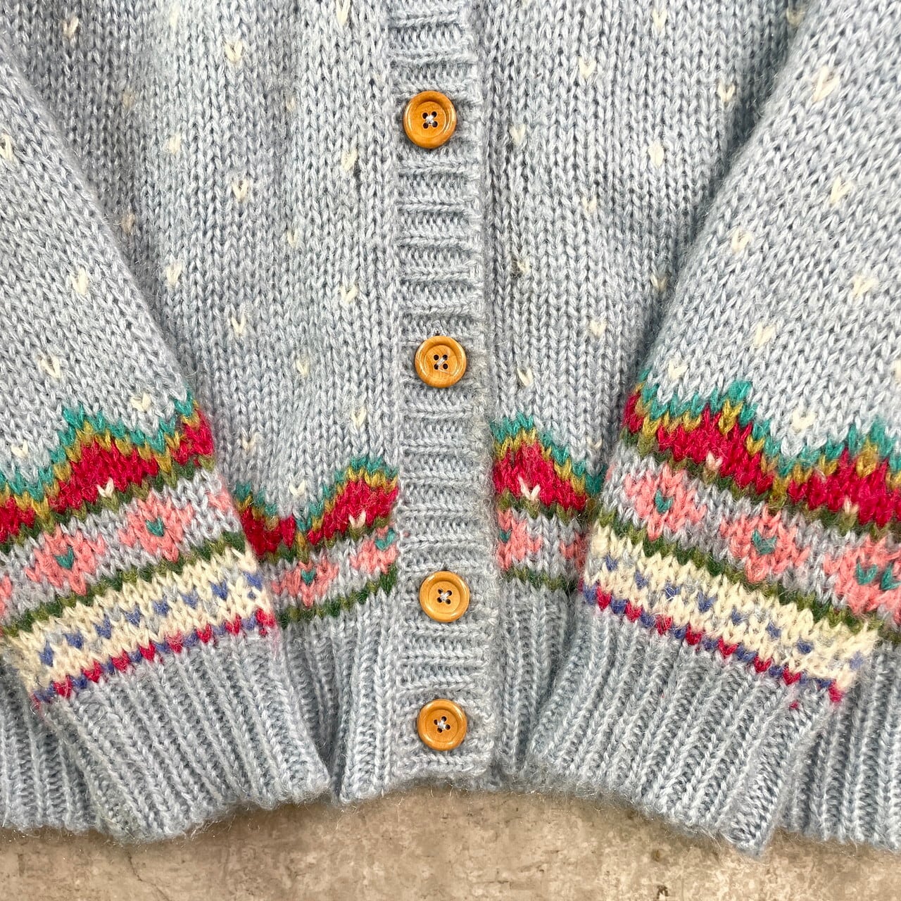 ■sundance ノルディック柄 バーズアイ ウールニットカーディガン レディースL相当 古着 フラワー 総柄【ニットセーター】/マルチカラー