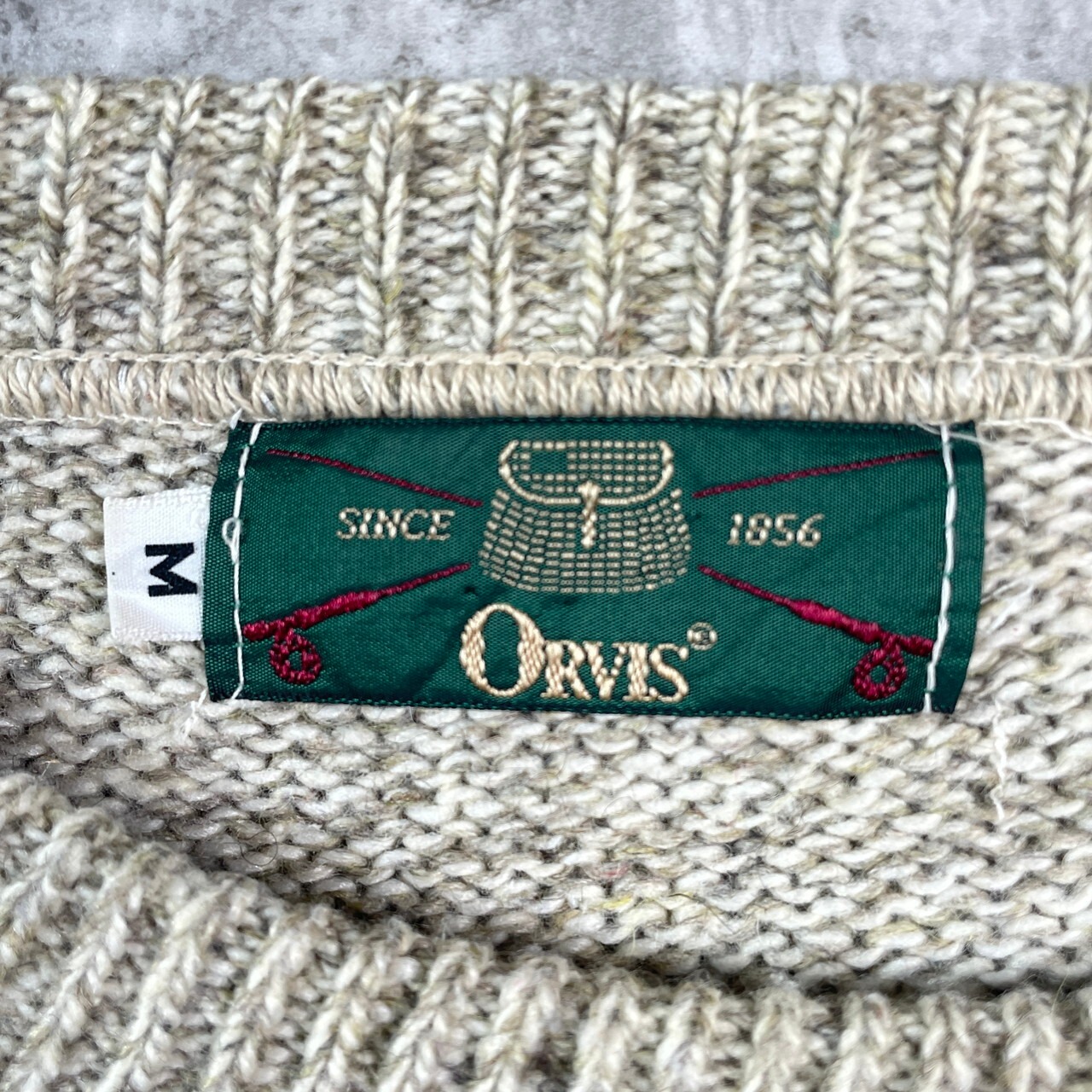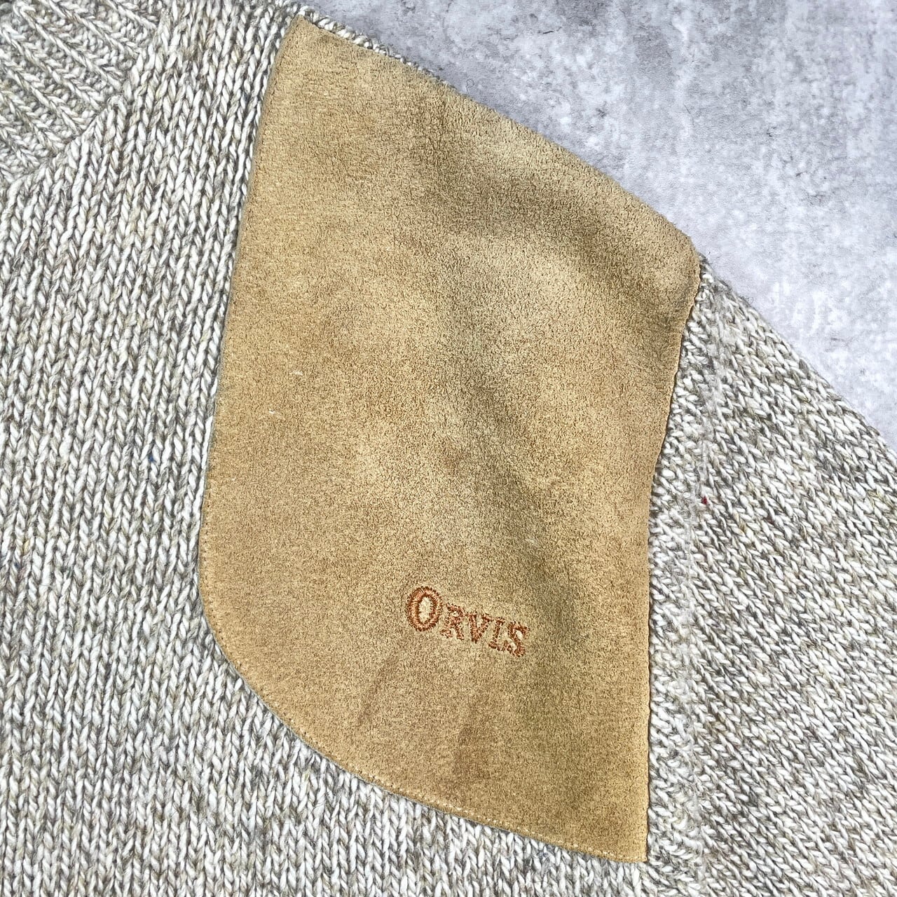 90年代 ORAVIS スエードレーザーパッチ チャンキーニットセーター メンズL相当 古着 90s VINTAGE ヴィンテージ ガンパッチ エルボーパッチ アウトドア【ニットセーター】/ベージュ