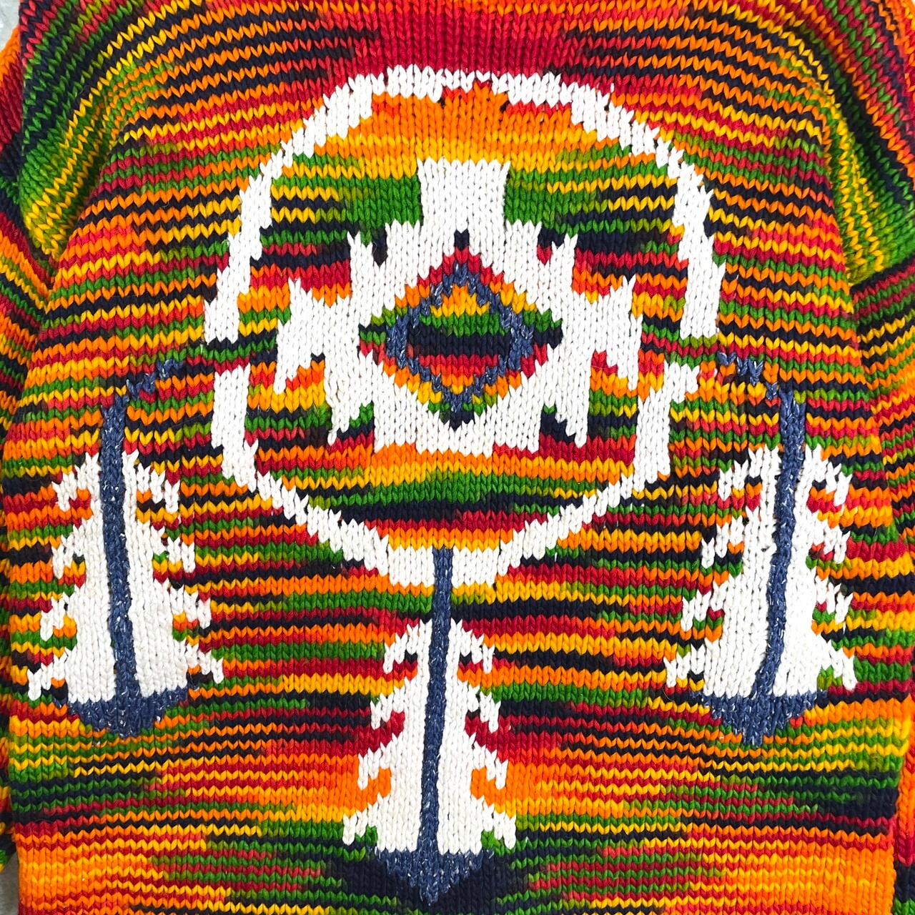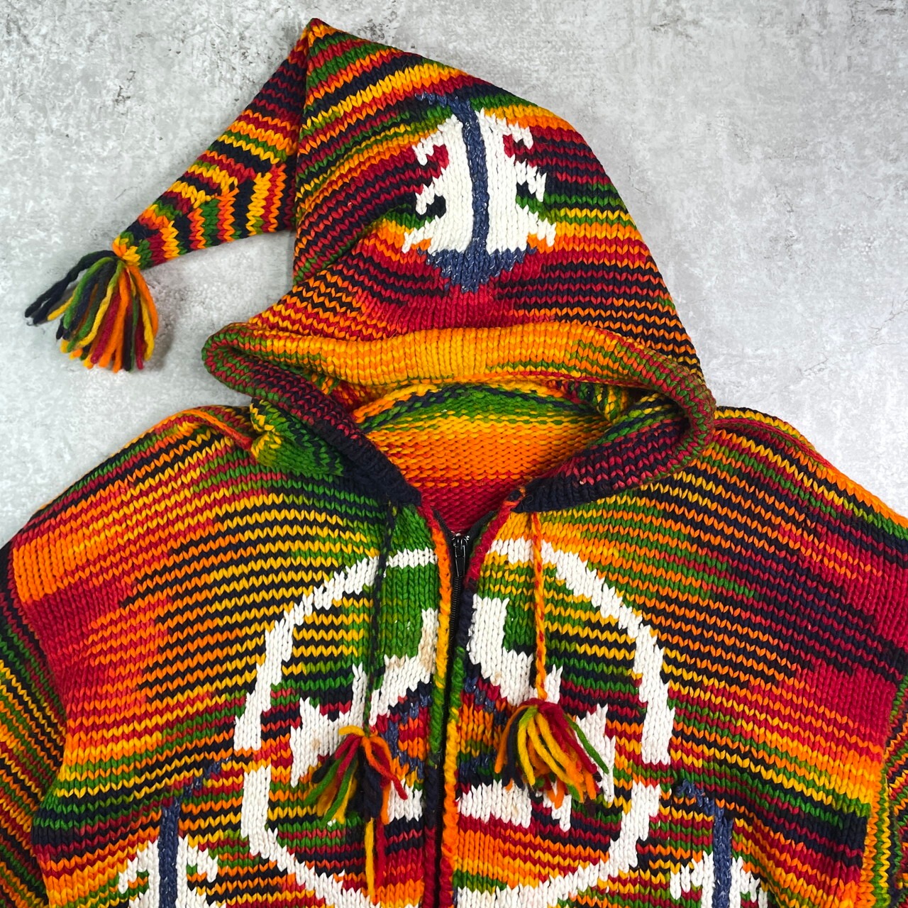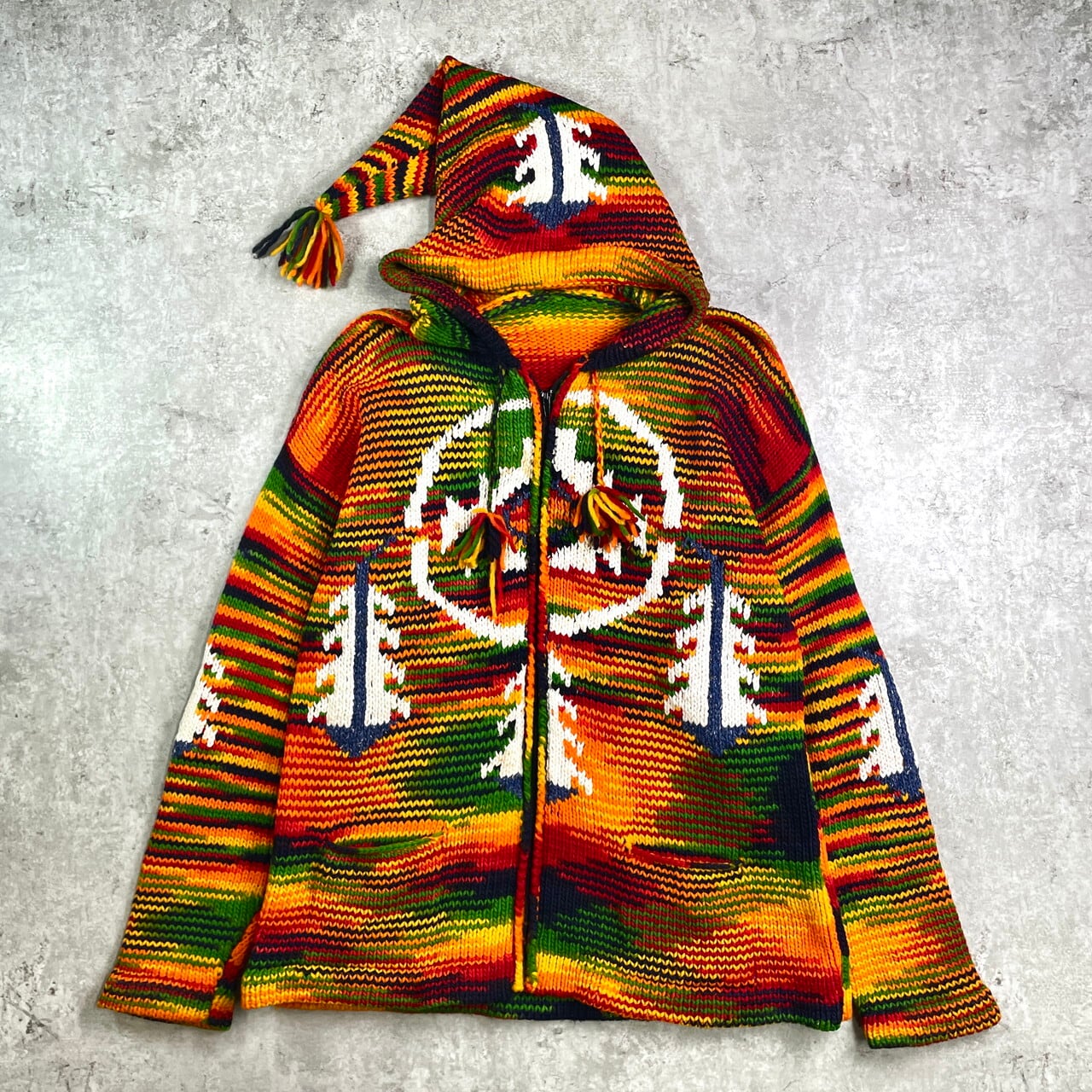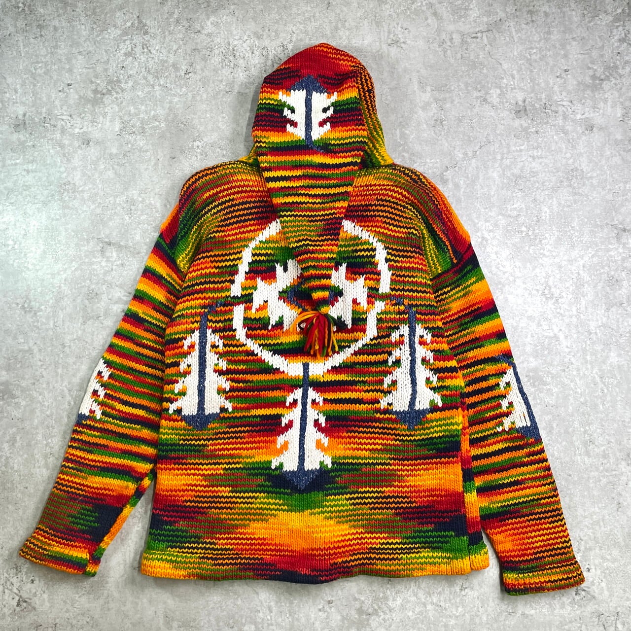 ■UNKNOWN エクアドルニットパーカー ニットカーディガン メンズL相当 古着 フルジップパーカー【ニットセーター】/マルチカラー