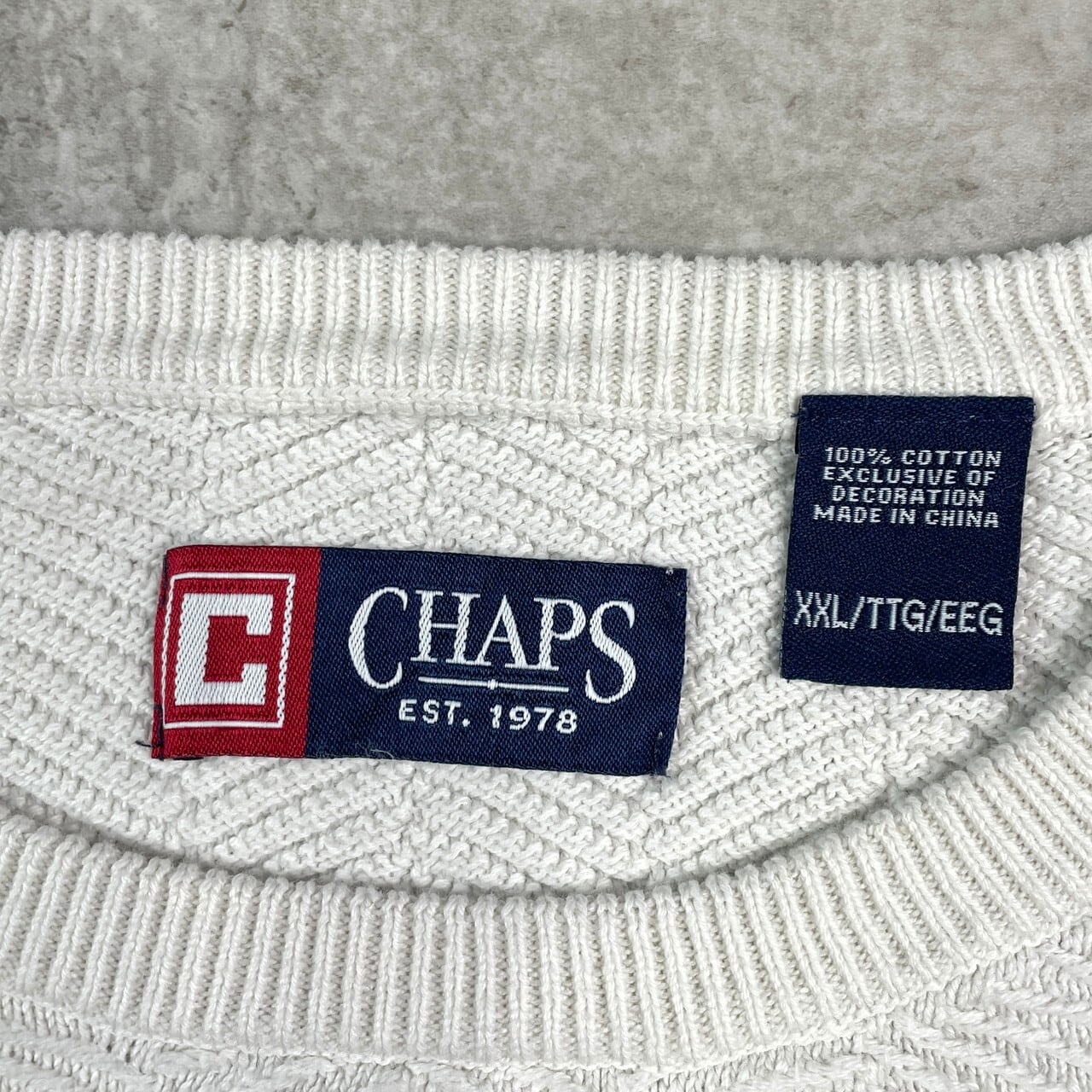 CHAPS チャップス ワンポイントロゴ刺繡 ヘリンボーンツイル コットンニットセーター メンズXL相当 古着 白【ニットセーター】/ホワイト