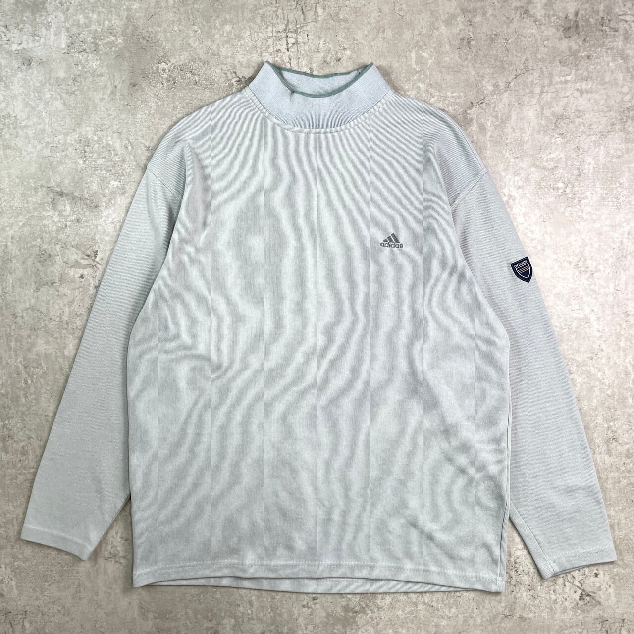 90年代 adidas アディダス パフォーマンスロゴ刺繍 モックネック スウェットシャツ メンズXL 古着 90s VINTAGE ヴィンテージ トレーナー ハイネック ライトブルー 水色【スウェット】/ブルー