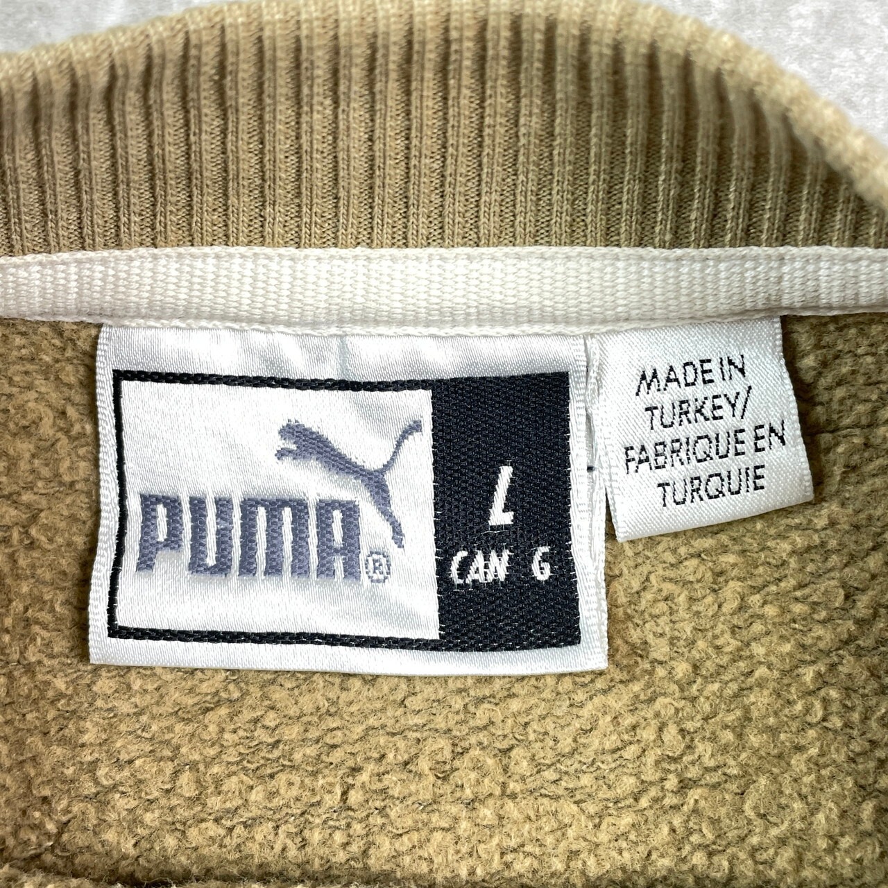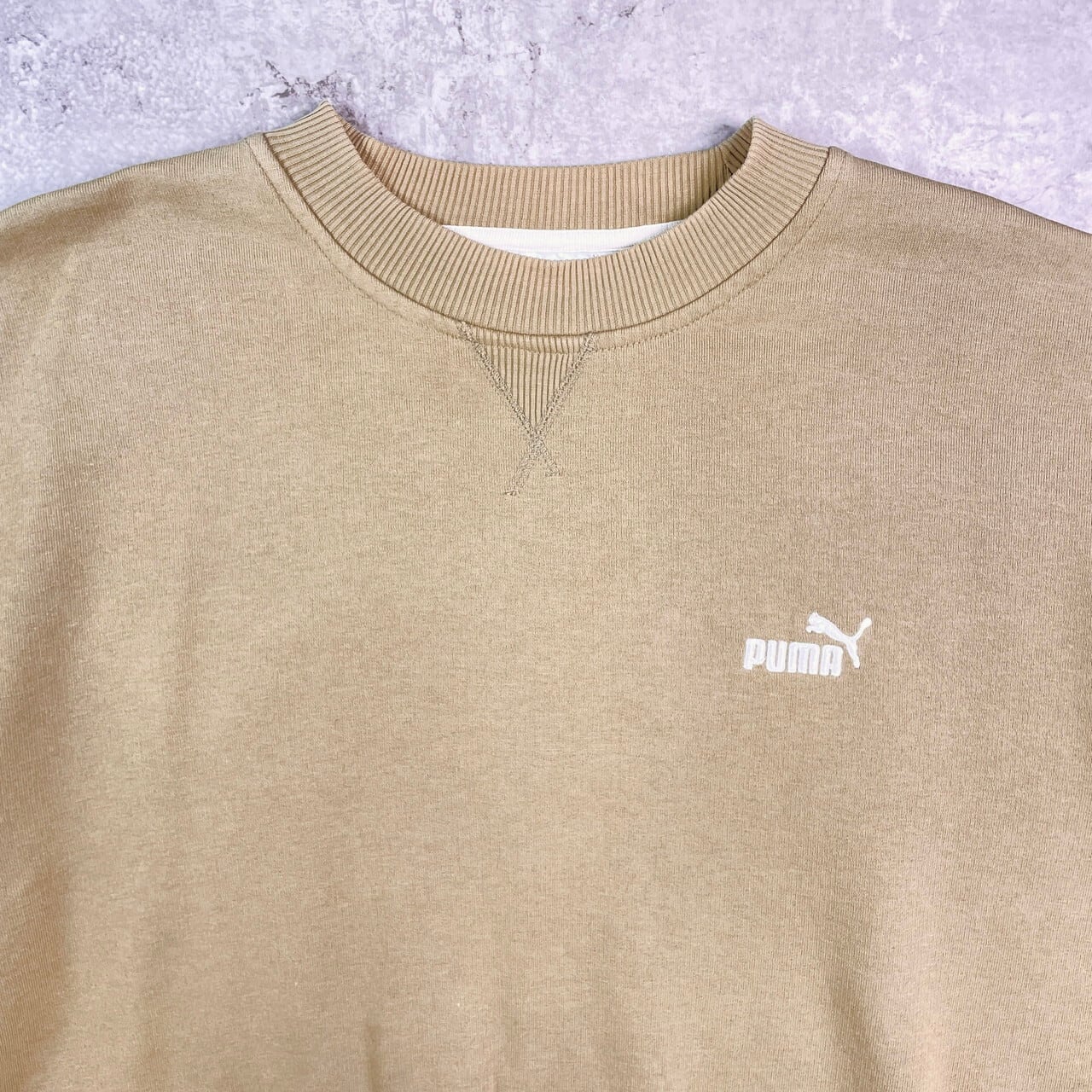90年代 PUMA プーマ ロゴ刺繍 スウェットシャツ メンズXL相当 古着 90s VINTAGE ヴィンテージ プルオーバー トレーナー 前Vガゼット カーキベージュ【スウェット】/ベージュ