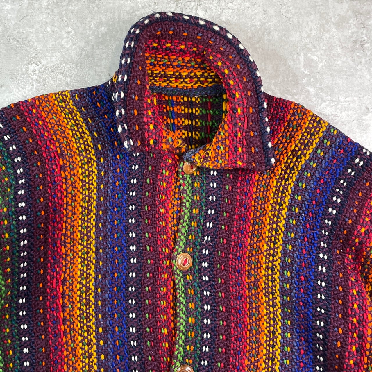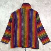 ■UNKNOWN ニットジャケット ニットカーディガン カウチンセーター メンズL相当 古着 襟付き 虹色 【ニットセーター】/マルチカラー
