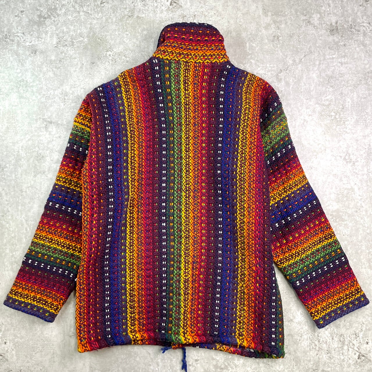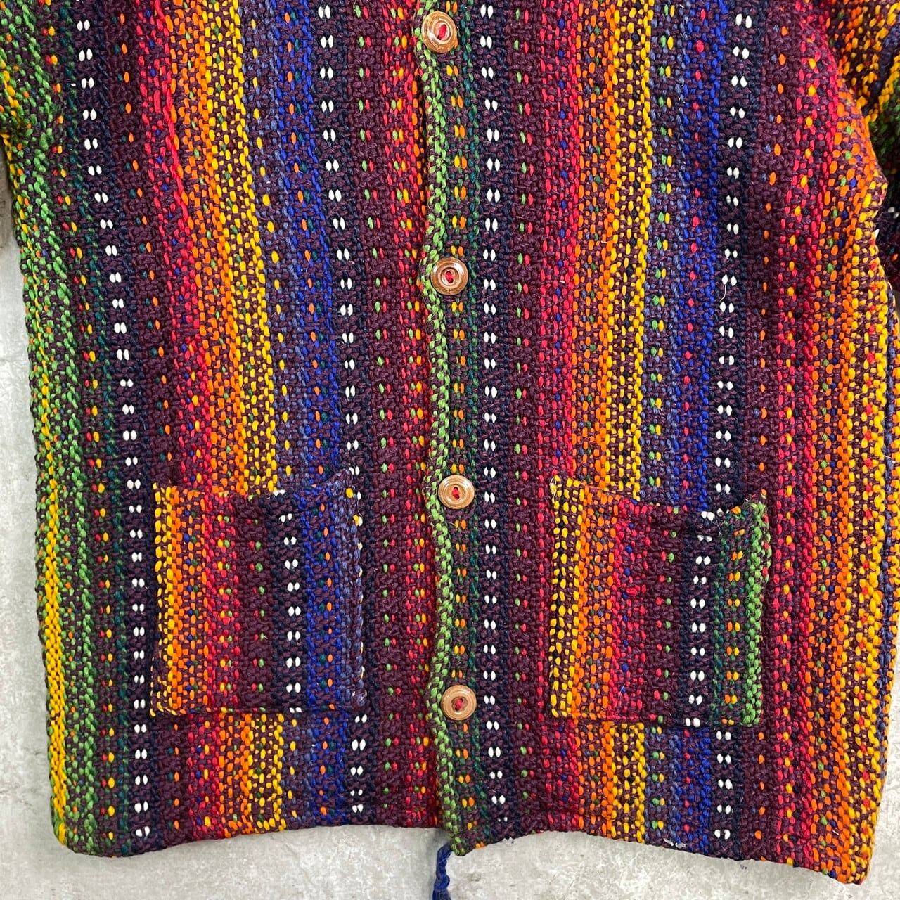 UNKNOWN ニットジャケット ニットカーディガン カウチンセーター メンズL相当 古着 襟付き 虹色 【ニットセーター】/マルチカラー