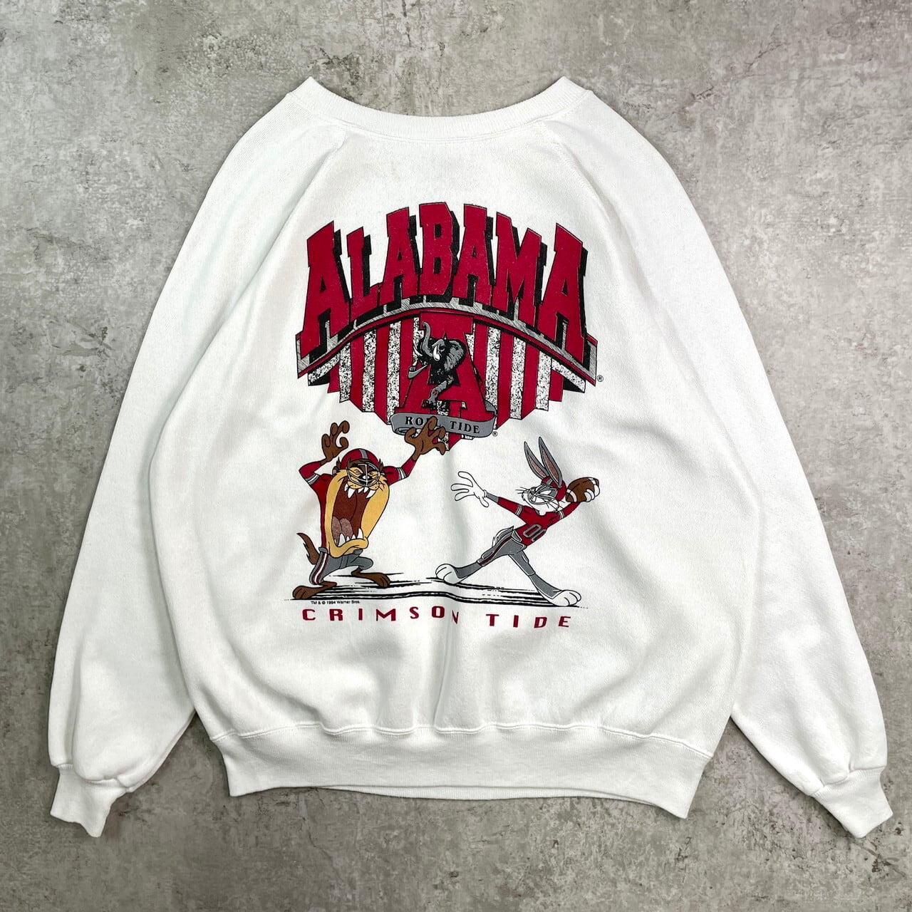 90年代 USA製 アラバマ クリムゾンタイド バッグスバニー タズマニアンデビル チームカレッジプリント スウェットシャツ メンズL 古着 1994 90s ヴィンテージ VINTAGE トレーナー WARNER BROS キャラクター ALABAMA アラバマ大学 白【スウェット】/ホワイト