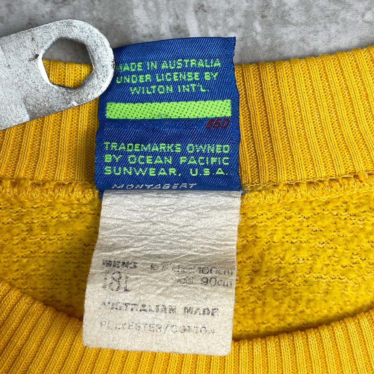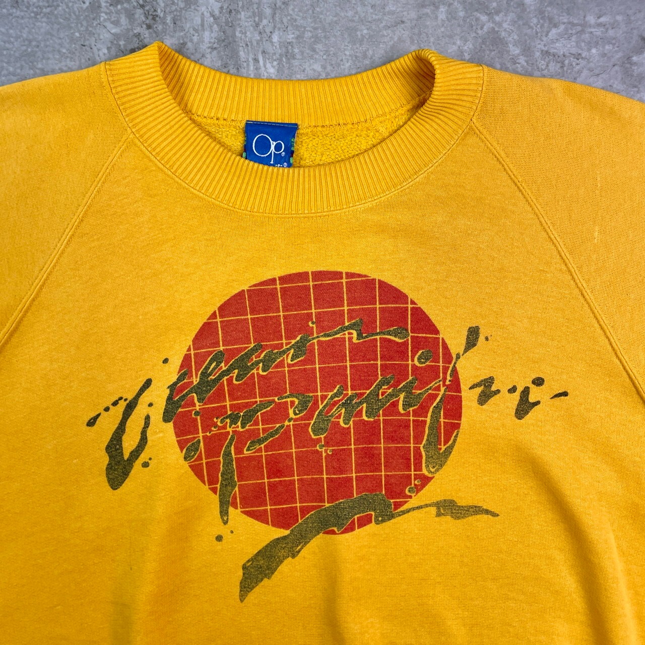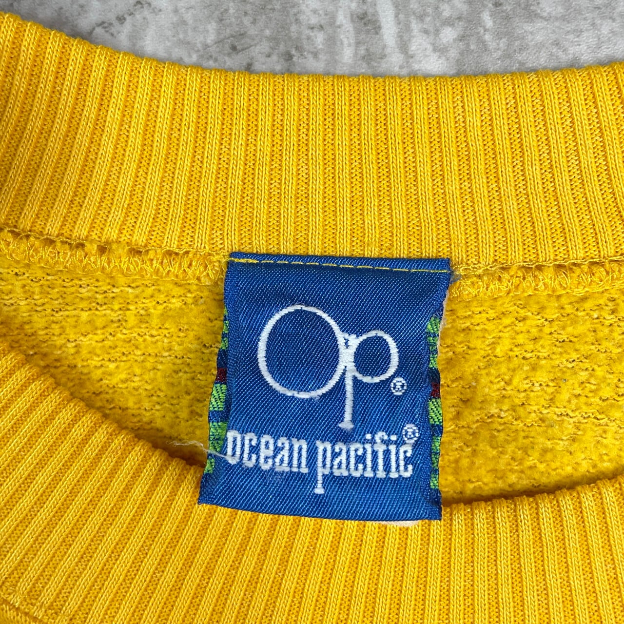 80年代 Op オーシャンパシフィック オールドサーフ ロゴプリント スウェットシャツ メンズM相当 レディースL相当 古着80s ヴィンテージ VINTAGE トレーナー 日の丸 スケボー オールドスケート 黄色【スウェット】/イエロー