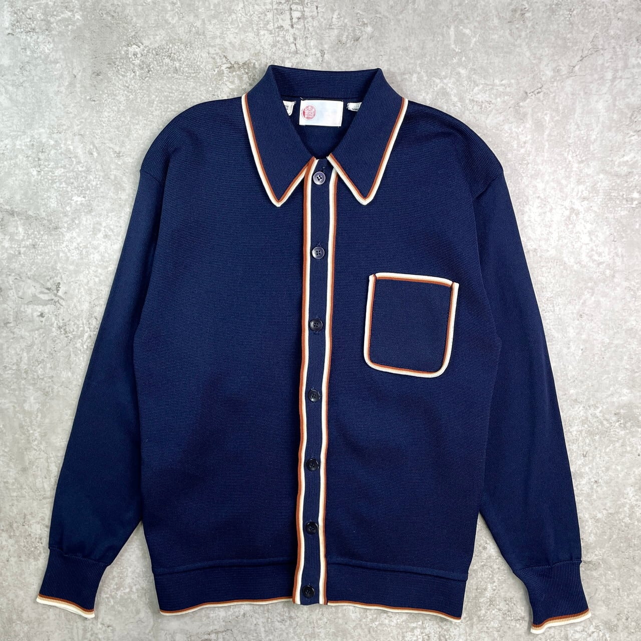 70年代 Sears KINGS ROAD シアーズ ニットカーディガン レディースM相当 メンズS相当 古着 70s VINTAGE ヴィンテージ 紺色【ニットセーター】/ネイビー