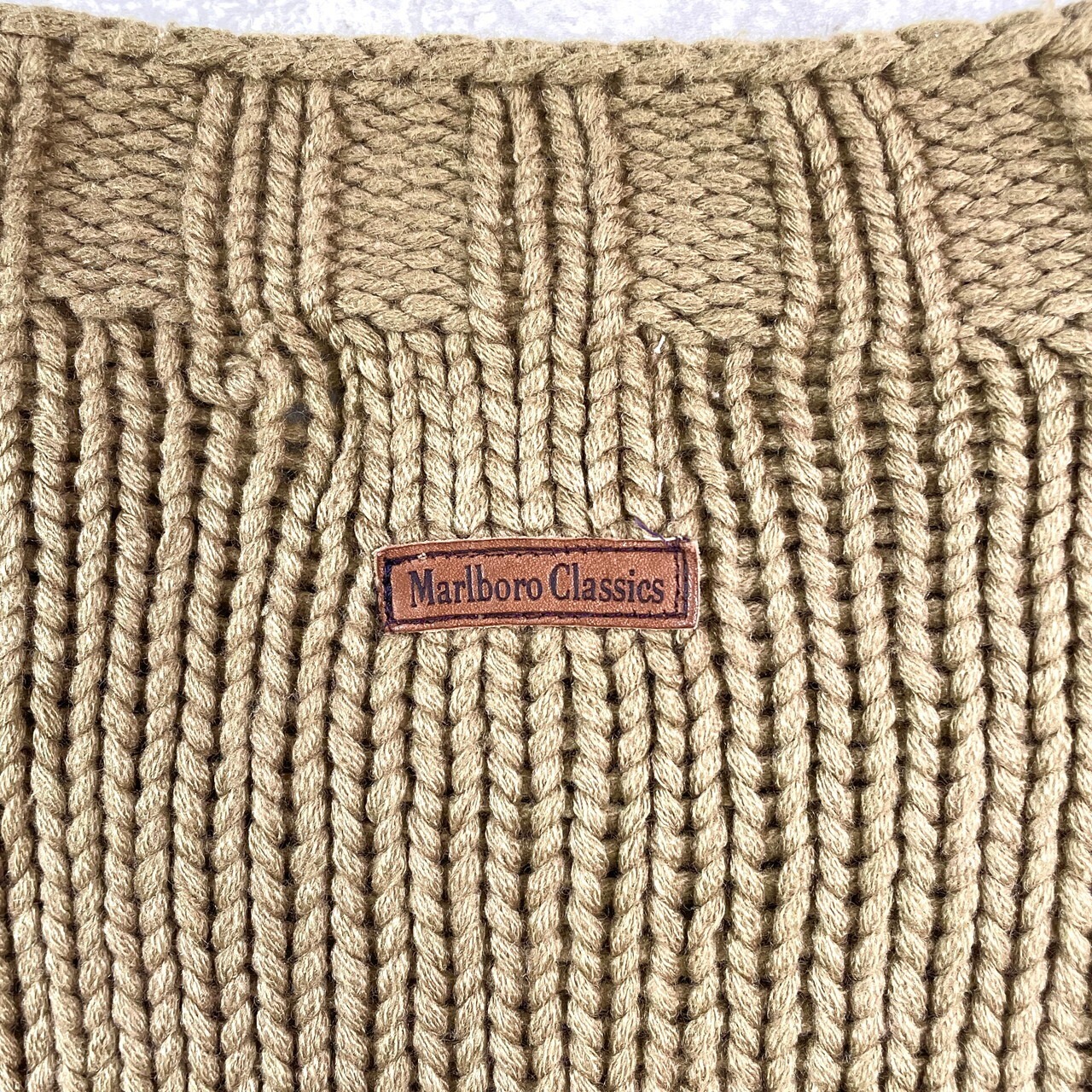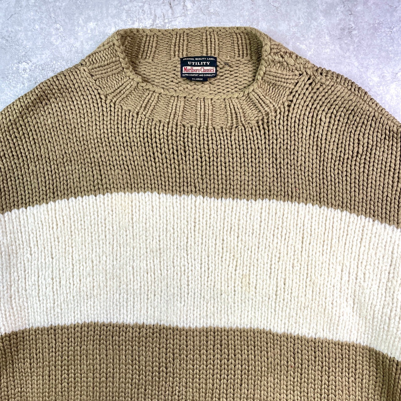 90年代 Marlboro Classics マルボロ ローゲージ ウールニットセーター メンズ2XL相当 古着 90s ヴィンテージ VINTAGE ビッグサイズ 大きいサイズ カーキベージュ ホワイト【ニットセーター】/マルチカラー