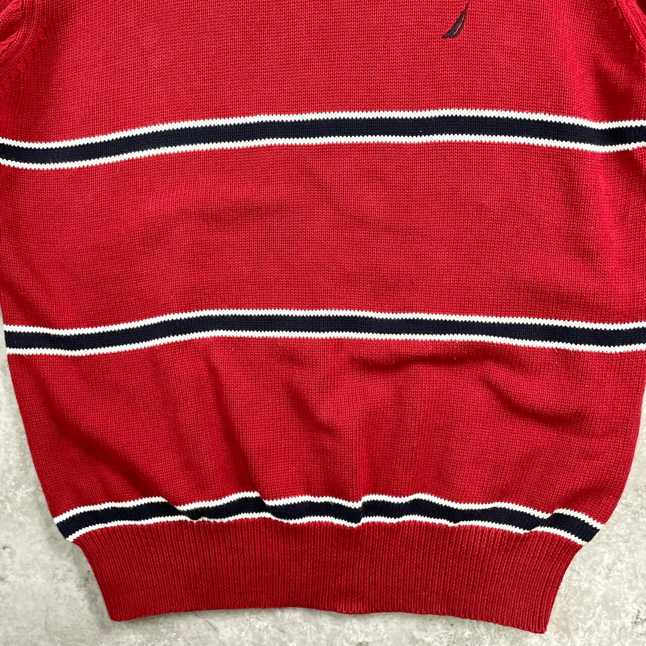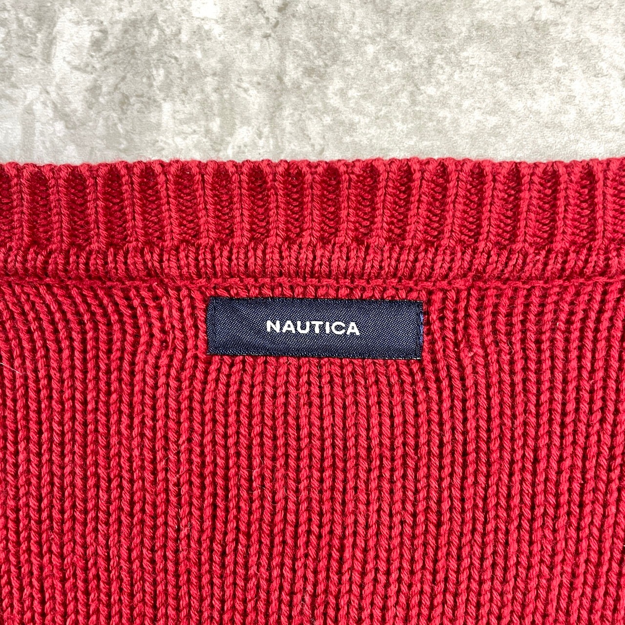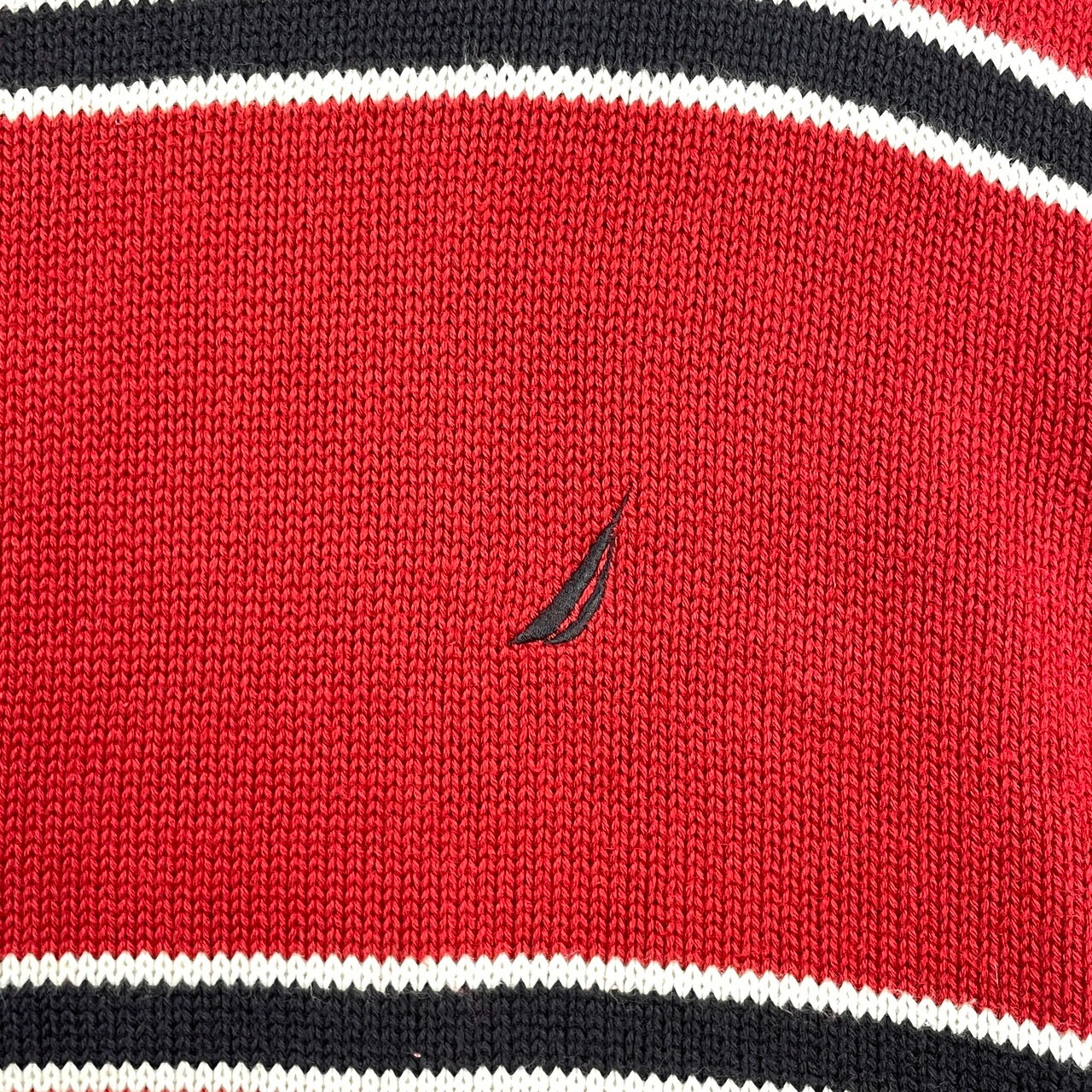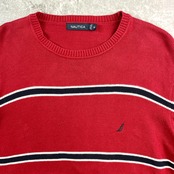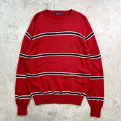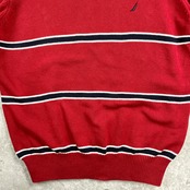 ■NAUTICA ノーティカ ボーダー コットンニットセーター メンズM 古着 赤【ニットセーター】/レッド