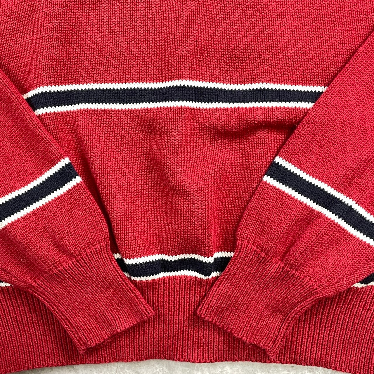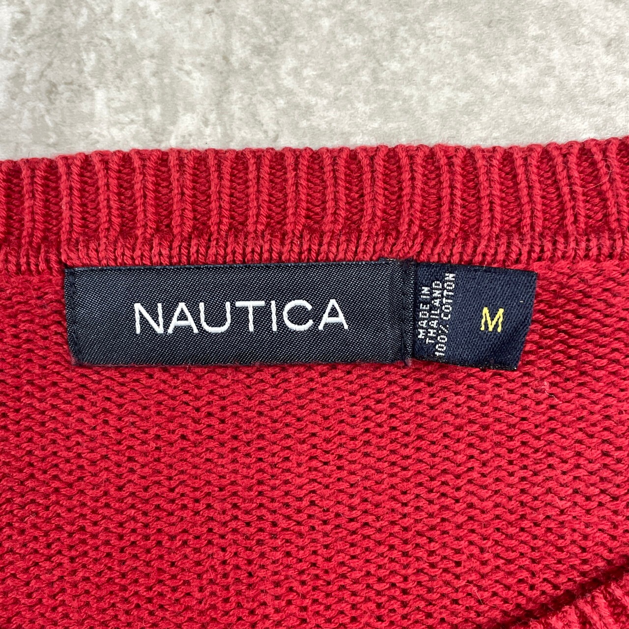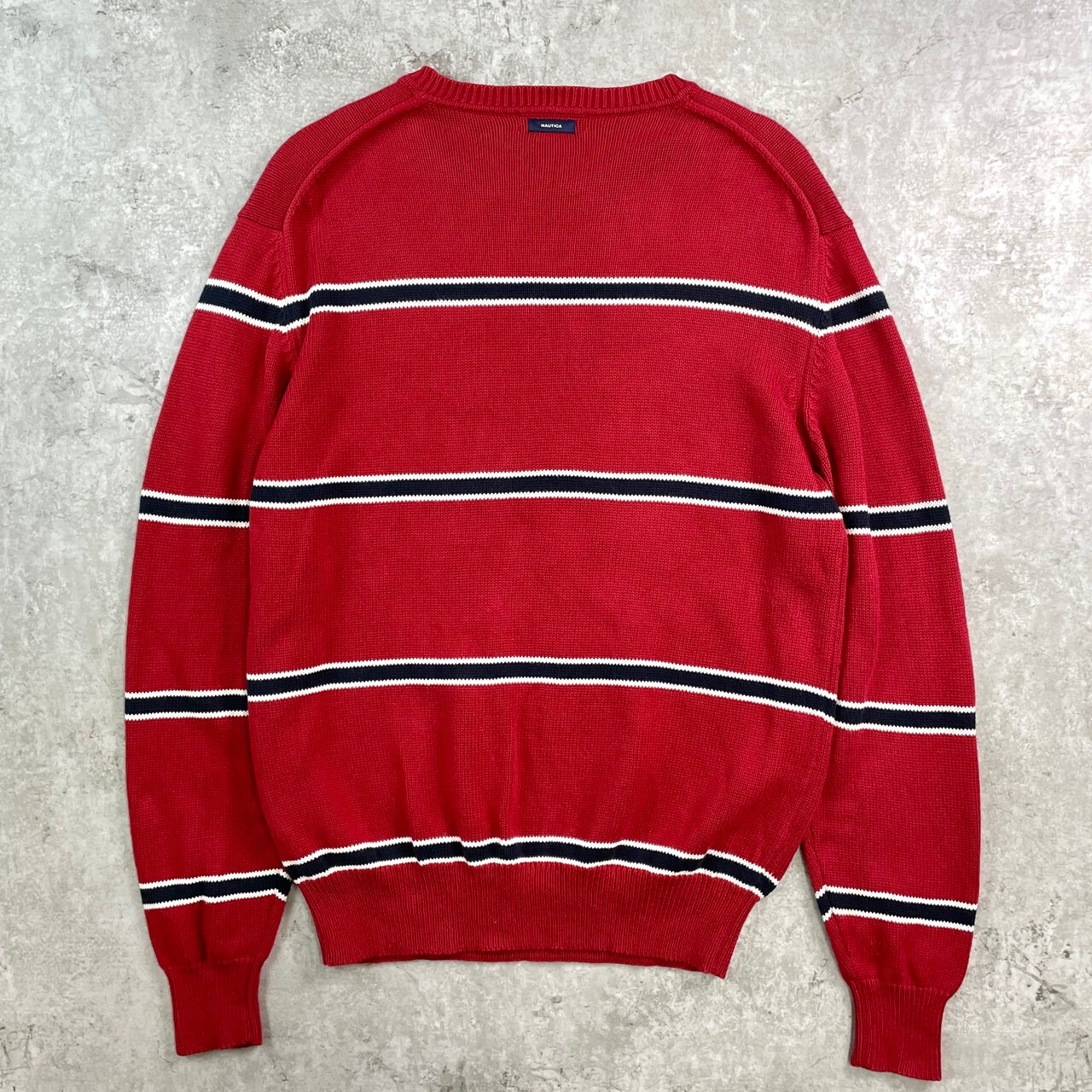 ■NAUTICA ノーティカ ボーダー コットンニットセーター メンズM 古着 赤【ニットセーター】/レッド
