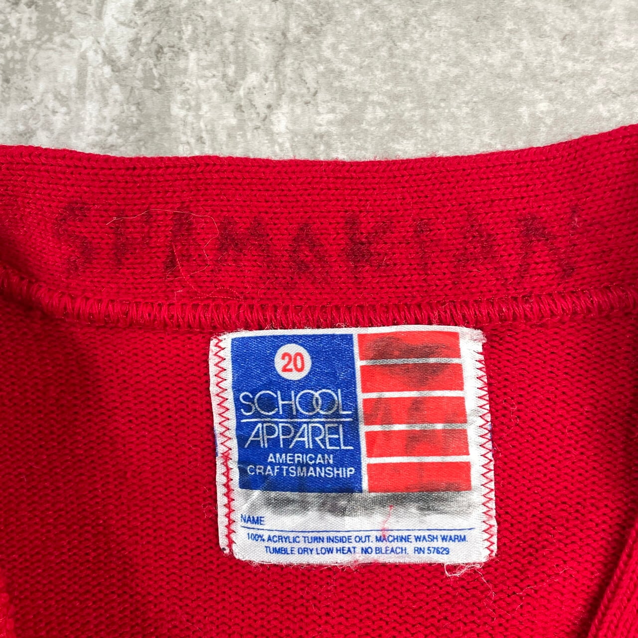 ■70年代 USA製 SCHOOL APPAREL レタードカーディガン メンズS相当 レディースM相当 古着 70s VINTAGE ヴィンテージ アクリルニットカーディガン 赤【ニットセーター】/レッド