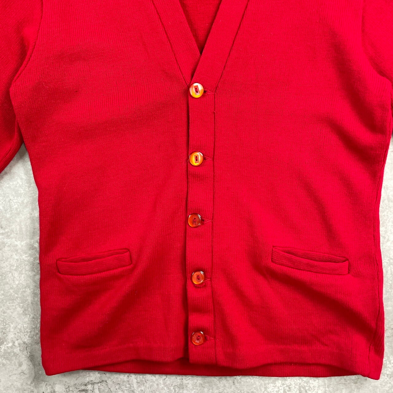 70年代 USA製 SCHOOL APPAREL レタードカーディガン メンズS相当 レディースM相当 古着 70s VINTAGE ヴィンテージ アクリルニットカーディガン 赤【ニットセーター】/レッド