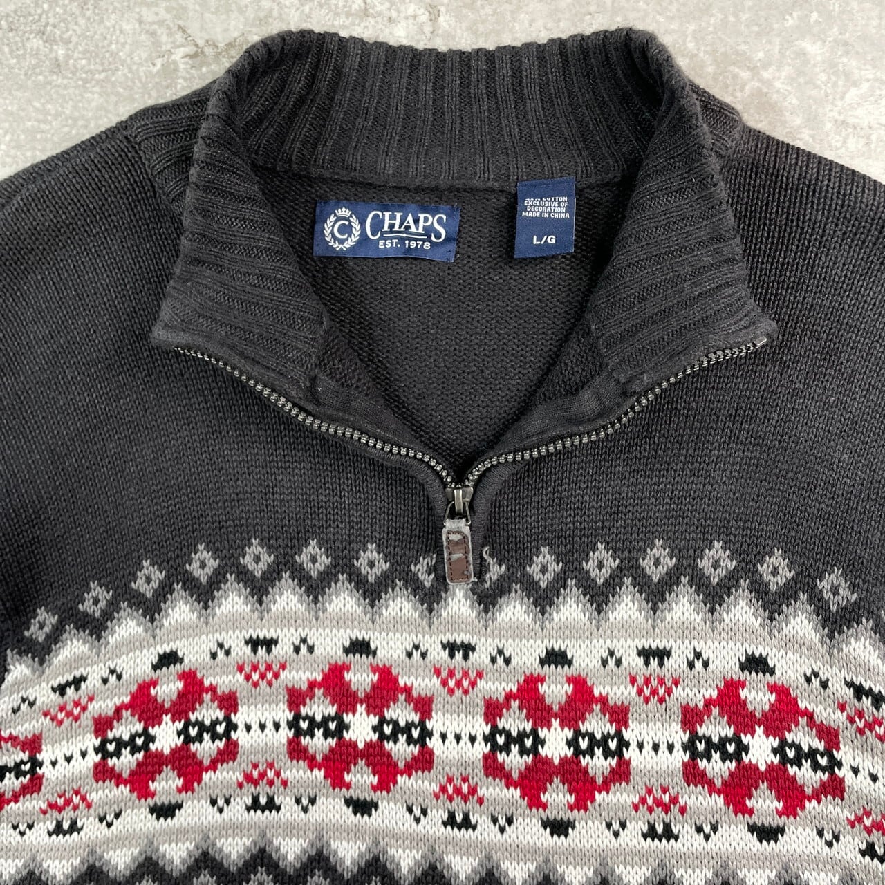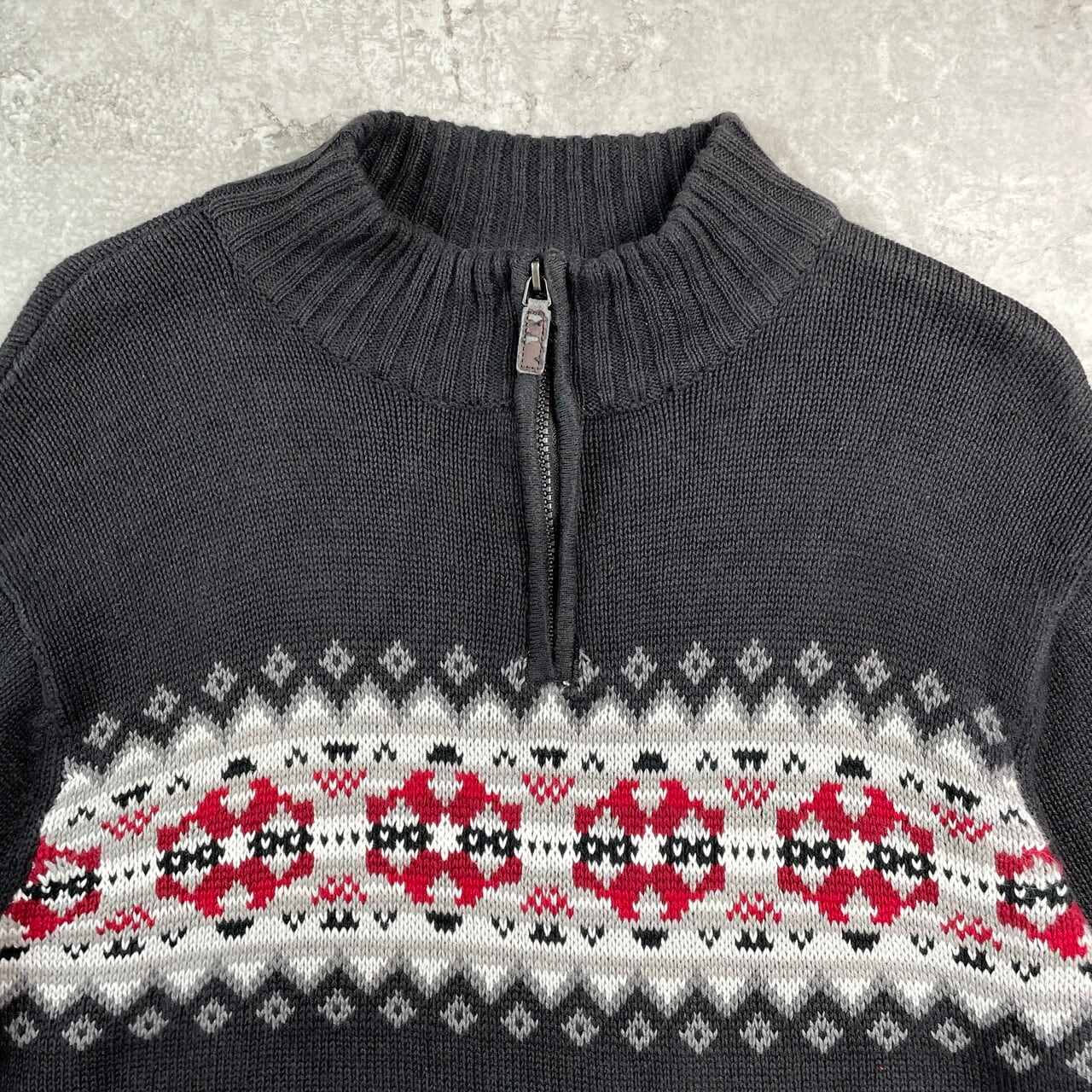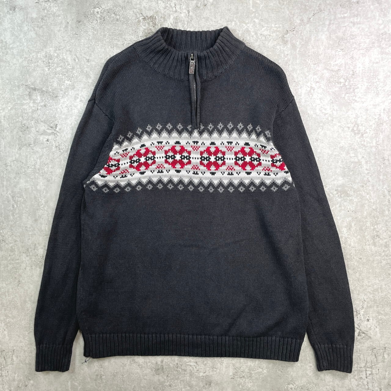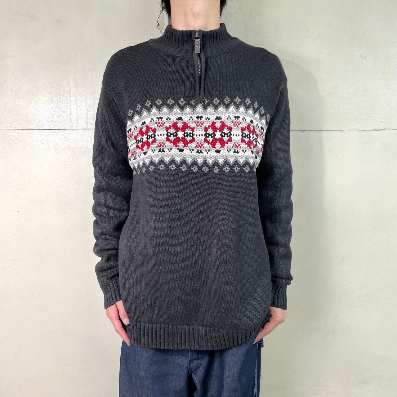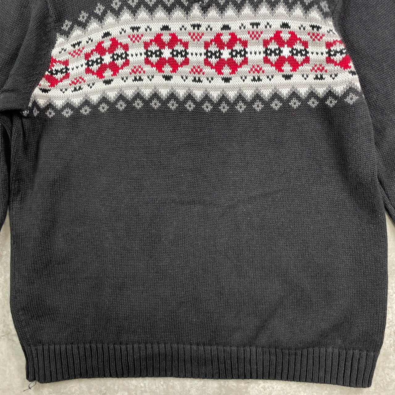 ■CHAPS チャップス ノルディック柄 ハーフジップ ラミー コットンニットセーター メンズXL相当 古着 ダークグレー【ニットセーター】/グレー