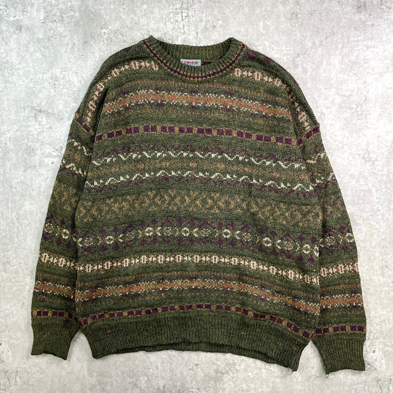90年代 イタリア製 RODIER HOMMES フェアアイル柄 カシミア混 ウールニットセーター メンズXL相当 古着 VINTAGE ヴィンテージ 総柄【ニットセーター】/マルチカラー
