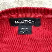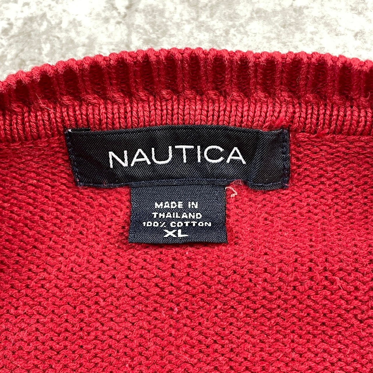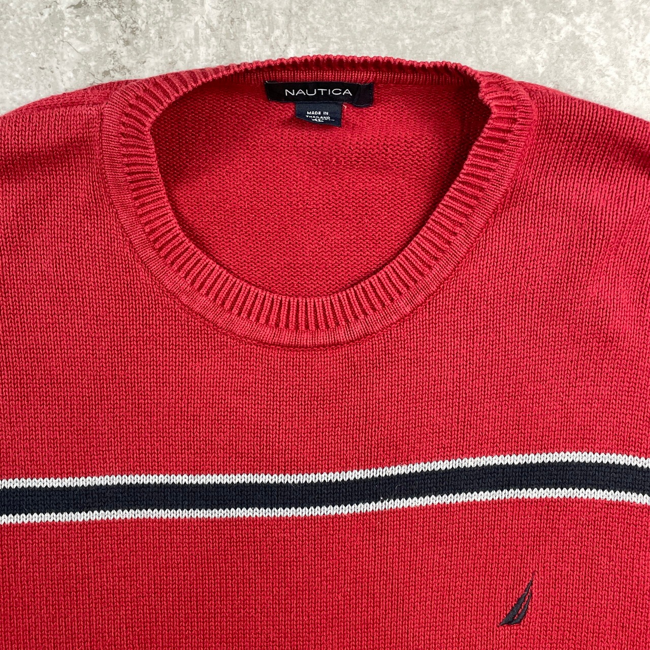 ■NAUTICA ノーティカ ボーダー コットンニットセーター メンズXL 古着 赤【ニットセーター】/レッド