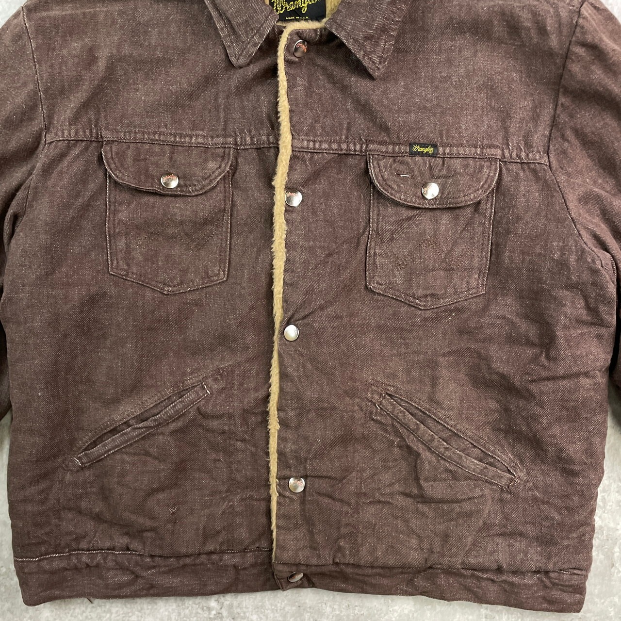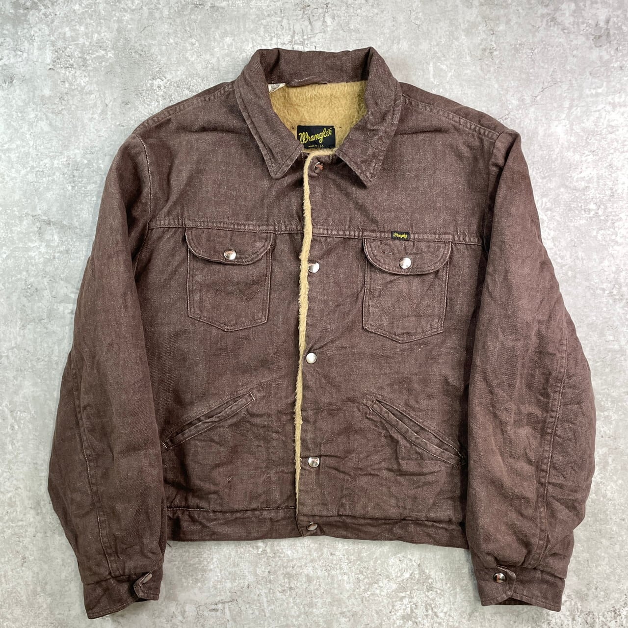 70年代 USA製 Wrangler ラングラー ボアジャケット ランチジャケット 短丈 メンズL相当 古着 70s ヴィンテージ VINTAGE アメカジ 茶色 【デニムジャケット】/ブラウン