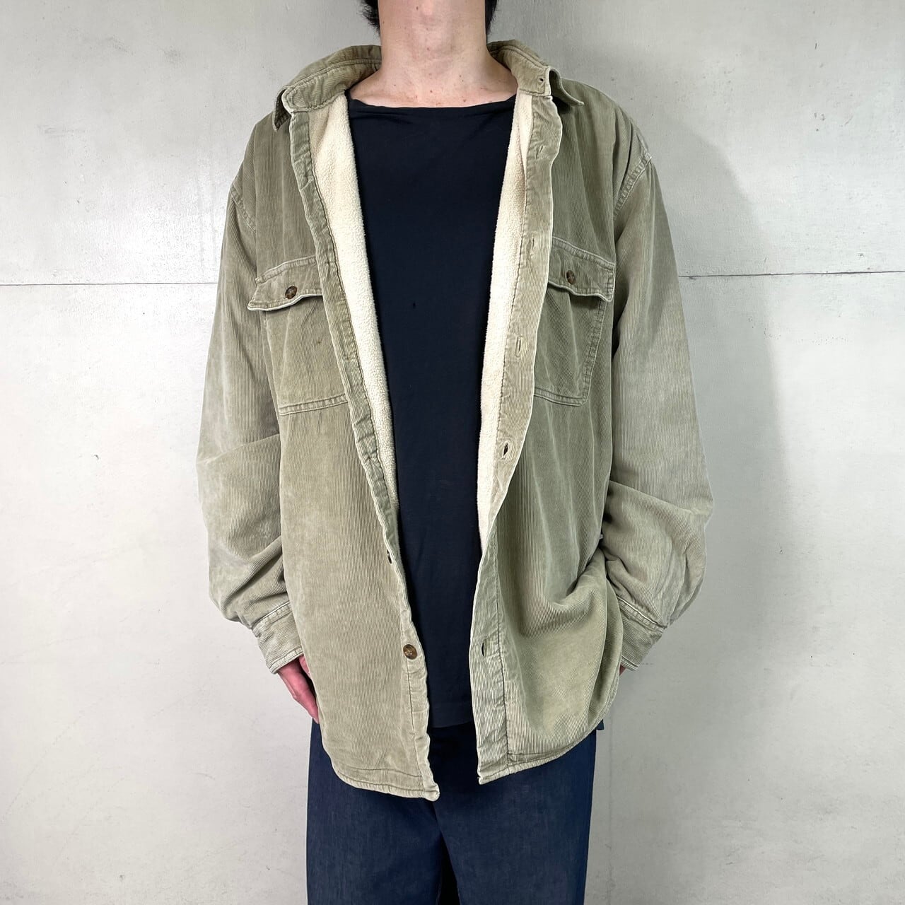 ■WOOLRICH ウールリッチ 裏ボア コーデュロイシャツ メンズXL 古着 フリースボアライナー コーズボア カーキベージュ【長袖シャツ】/ベージュ