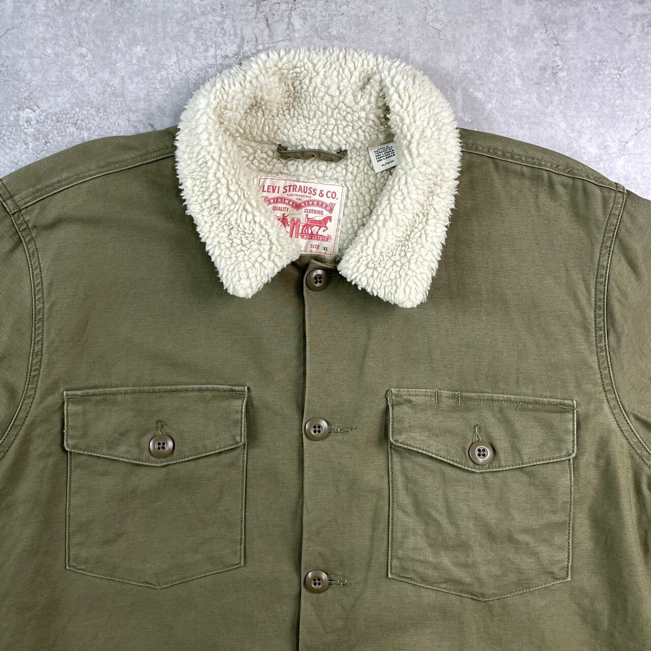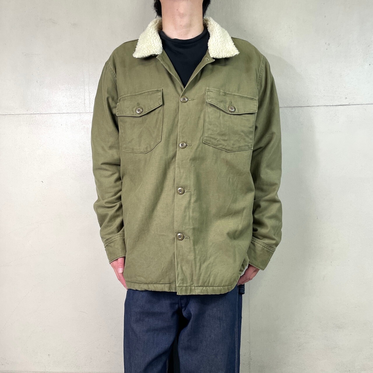 Levi's リーバイス シェルパ 裏ボア ミリタリータイプ ユーティリティジャケット メンズXL 古着 アメカジ フィールドジャケット ボアライナー オリーブグリーン【コットンジャケット】/カーキグリーン
