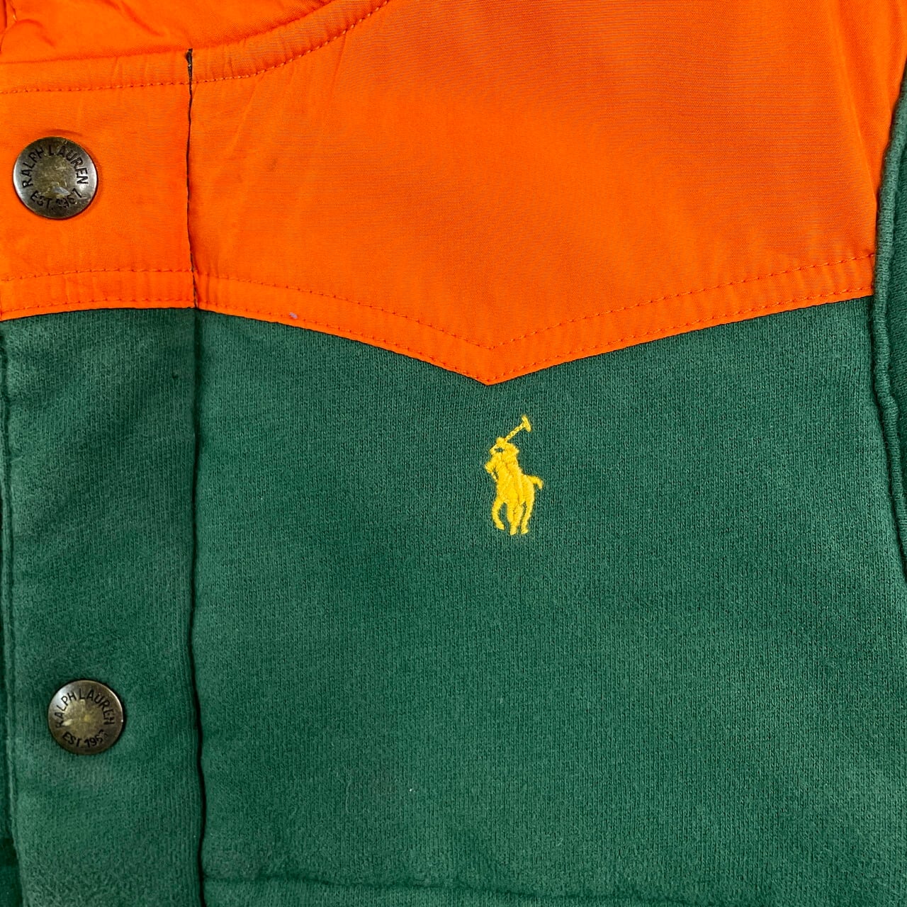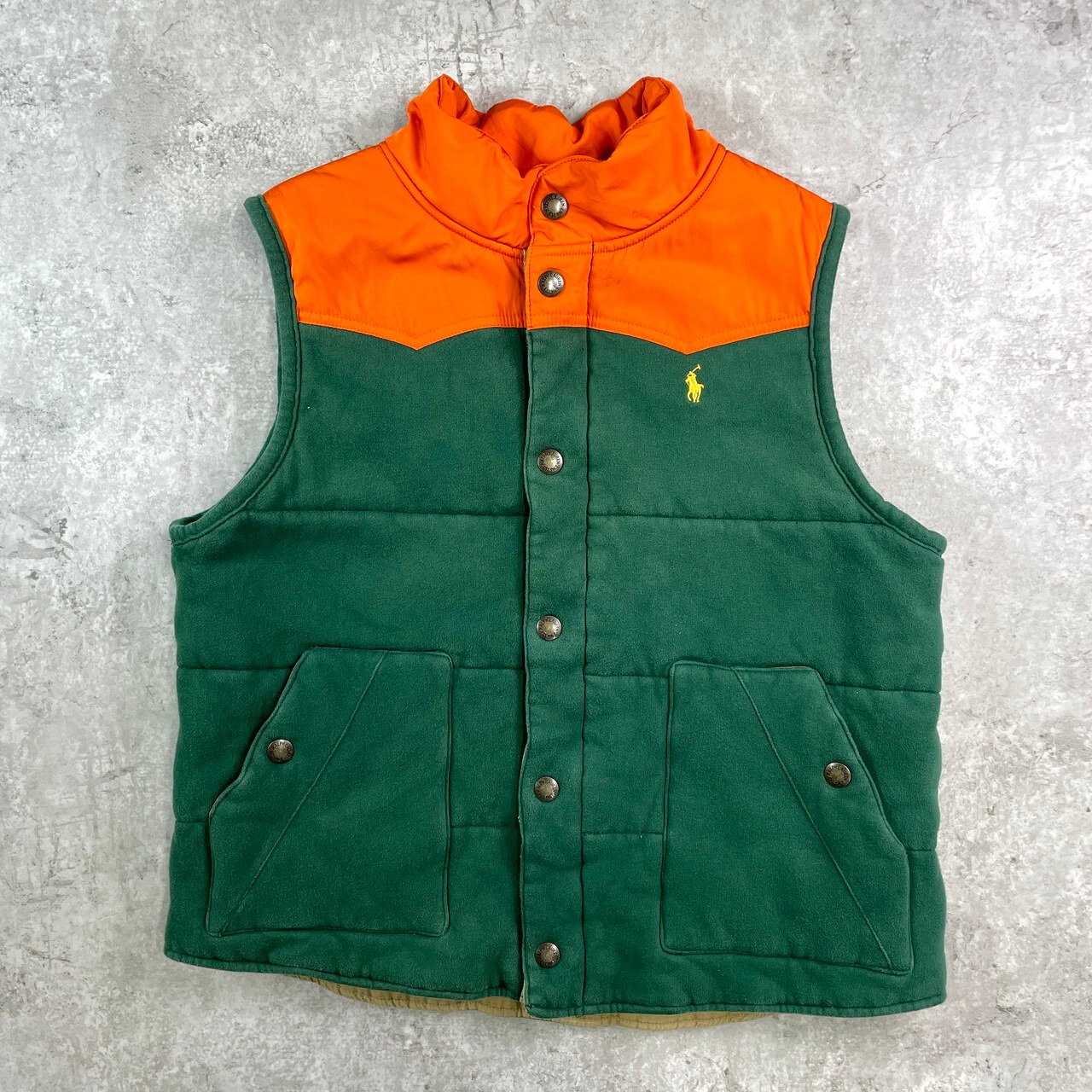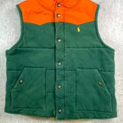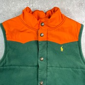 Polo Ralph Lauren ポロラルフローレン スウェット地 ベスト メンズL 古着 切り替えデザイン 復刻 TALON オレンジ グリーン 【アウトドアジャケット】/マルチカラー
