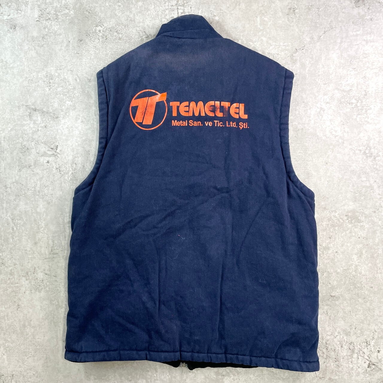 UNKNOWN ワークベスト 裏地フリース メンズXL相当 古着 企業ロゴプリント フェード 紺色【ベスト】/ネイビー