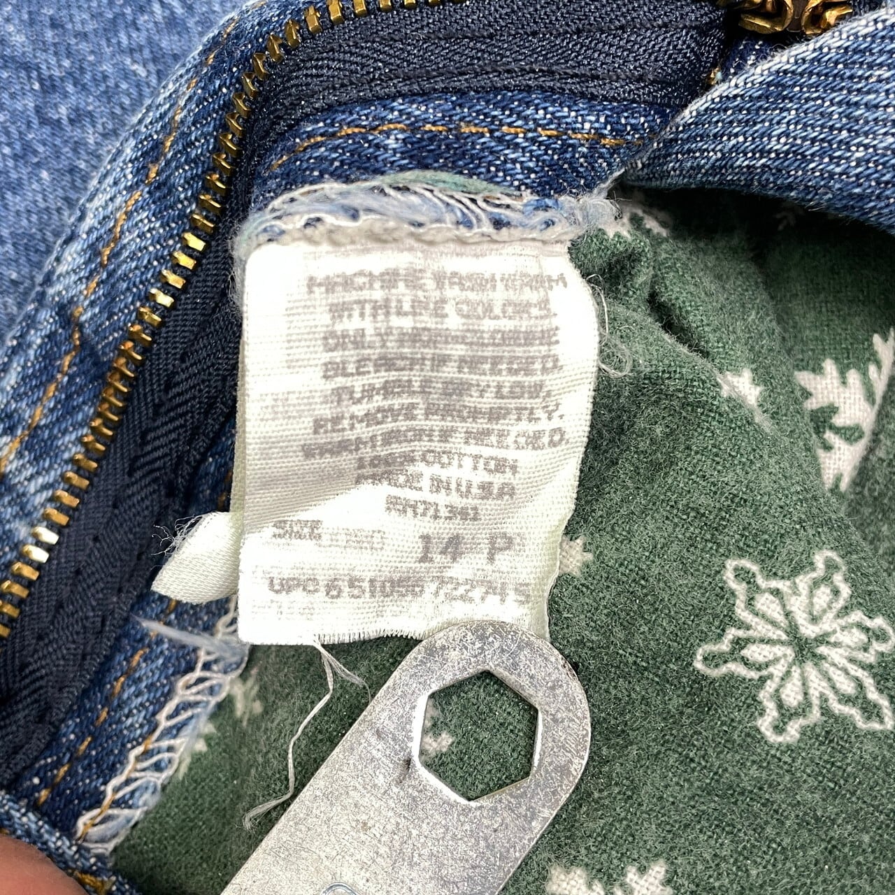90年代 USA製 L.L.Bean エルエルビーン ワイドテーパード デニムパンツ メンズW32相当 レディース 古着 90s VINTAGE ヴィンテージ アメカジ 総柄ライナー【デニムパンツ】/ブルー