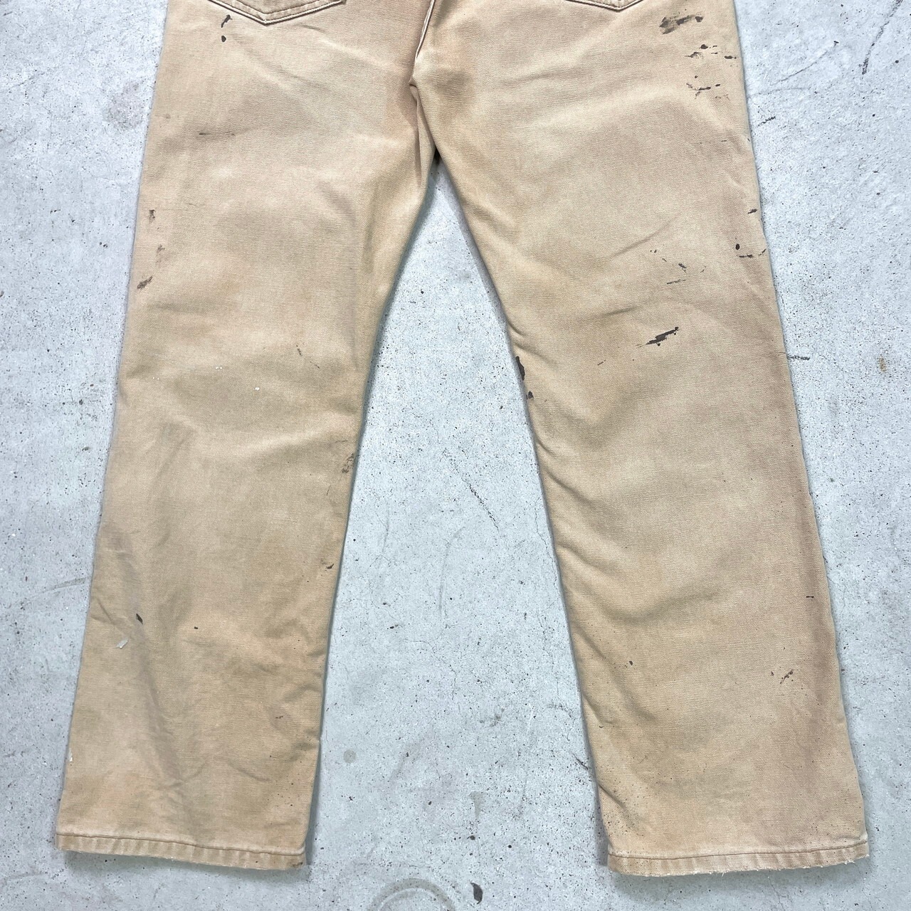 ■Carhartt カーハート ダック地 ペインターパンツ ワークパンツ ペンキ メンズW34 古着 フェードブラウン ライトブラウン 茶色【ワークパンツ】/ベージュ