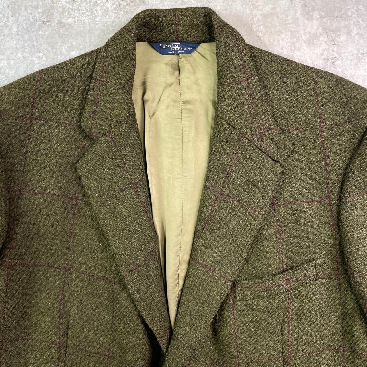 90年代 スペイン製 Polo by Ralph Lauren ポロバイラルフローレン チェック ツイード テーラードジャケット メンズ2XL相当 古着 90s VINTAGE ヴィンテージ ビッグサイズ 大きいサイズ 緑【ブルゾン・ジャケット】/カーキグリーン