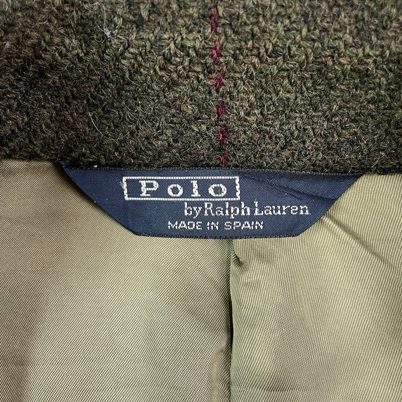 ■90年代 スペイン製 Polo by Ralph Lauren ポロバイラルフローレン チェック ツイード テーラードジャケット メンズ2XL相当 古着 90s VINTAGE ヴィンテージ ビッグサイズ 大きいサイズ 緑【ブルゾン・ジャケット】/カーキグリーン
