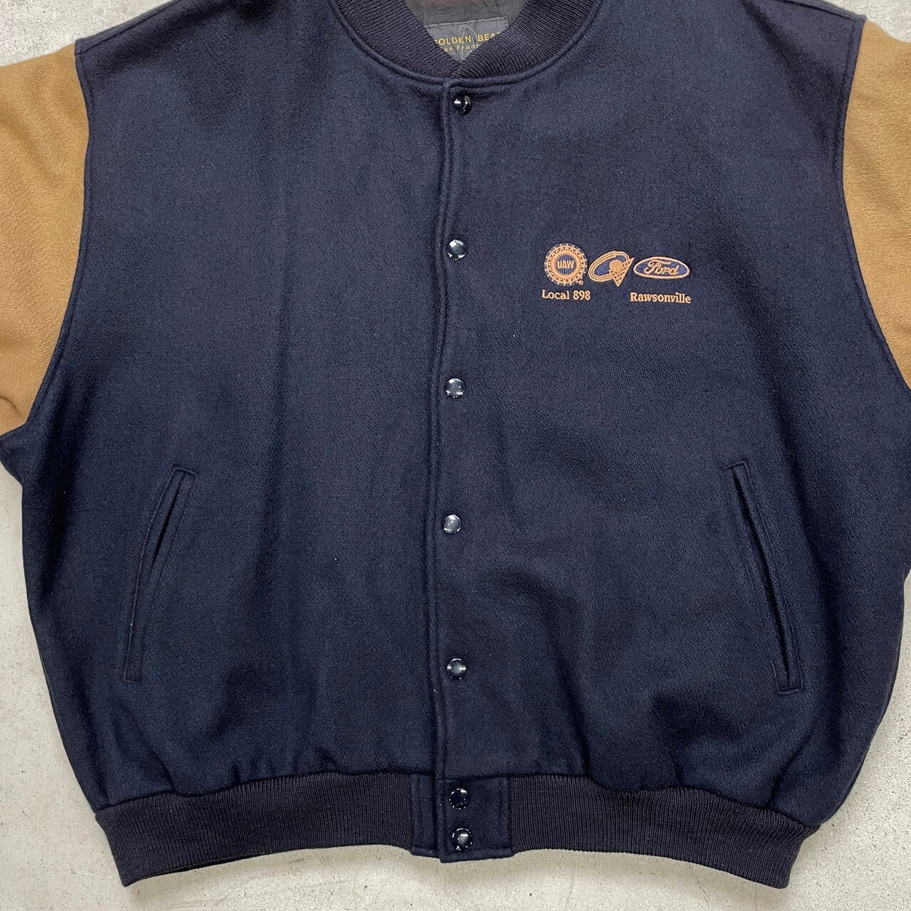 USA製 GOLDEN BEAR ゴールデンベアー Ford ツートン ウールスタジャン メンズ3XL 古着 アメカジ 企業ロゴ刺繍 フォード スタジアムジャケット ビッグサイズ 大きいサイズ ダークネイビー ベージュ【ブルゾン・ジャケット】/マルチカラー