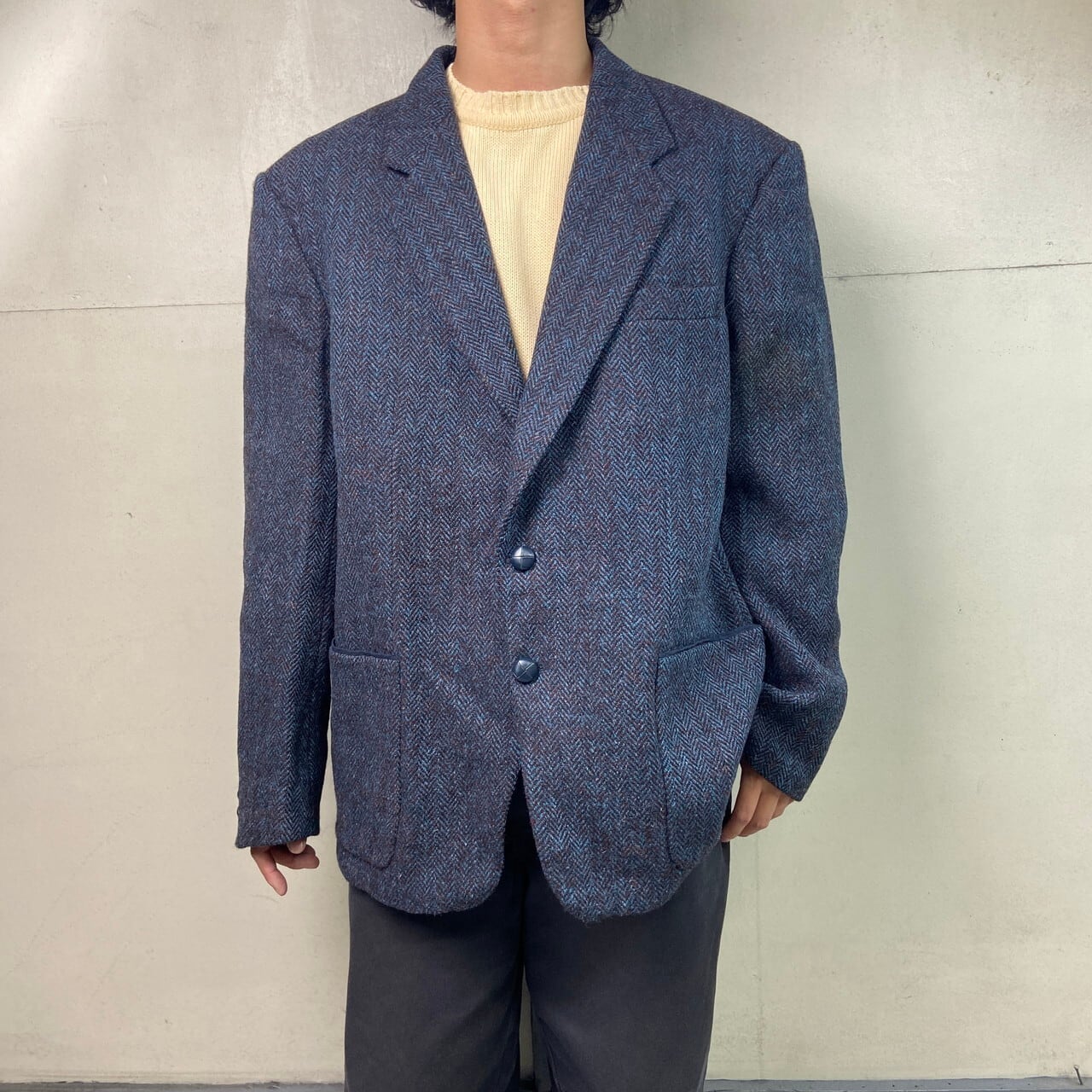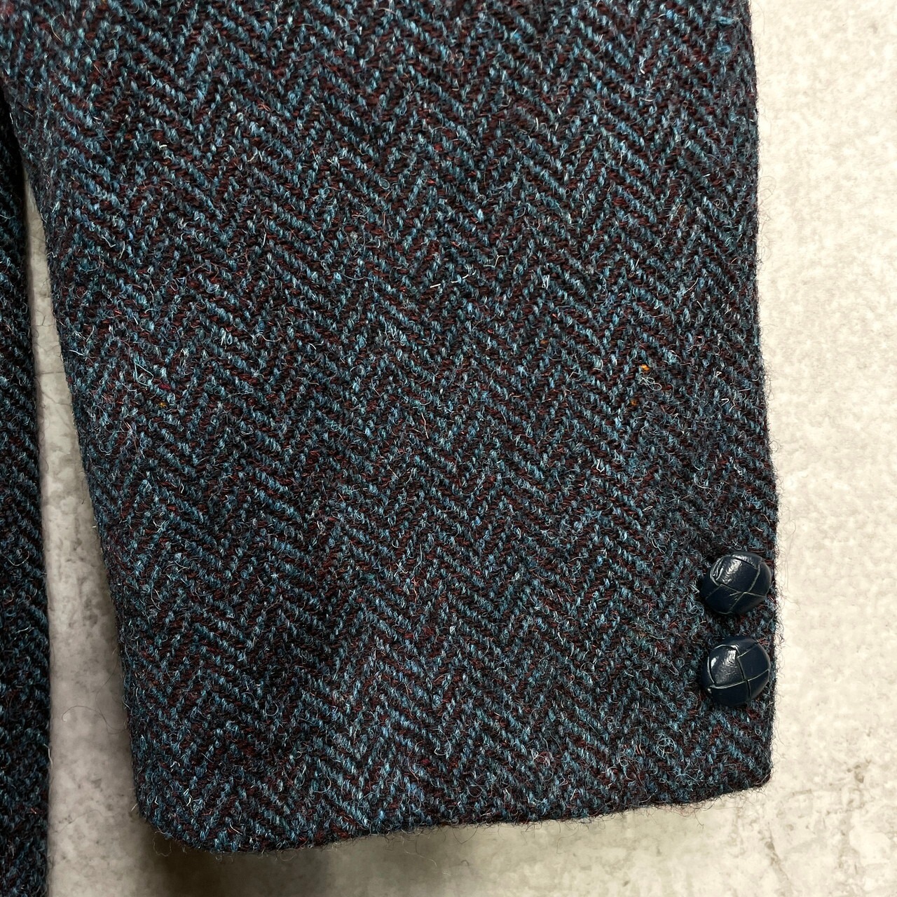 90年代 西ドイツ製 HARRIS TWEED ハリスツイード ヘリンボーン ウールテーラードジャケット メンズXL相当 古着 90s ヴィンテージ VINTAGE 2B 2ボタン ターコイズブルー バーガンディ【テーラードジャケット】/マルチカラー