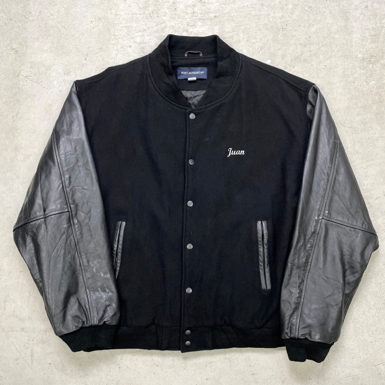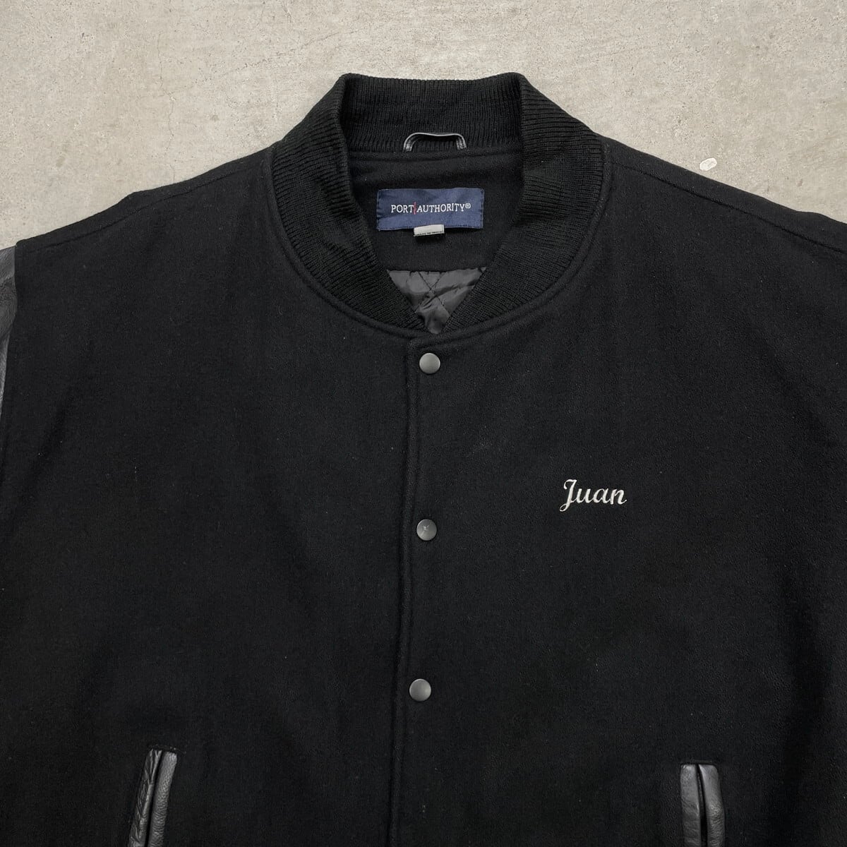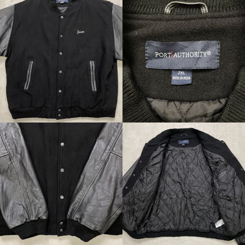 ■PORT AUTHORITY ウールスタジャン カレッジロゴ刺繍 メンズ2XL 古着 アメカジ キルティングライナー ビッグサイズ 大きいサイズ 黒色【ブルゾン・ジャケット】/ブラック