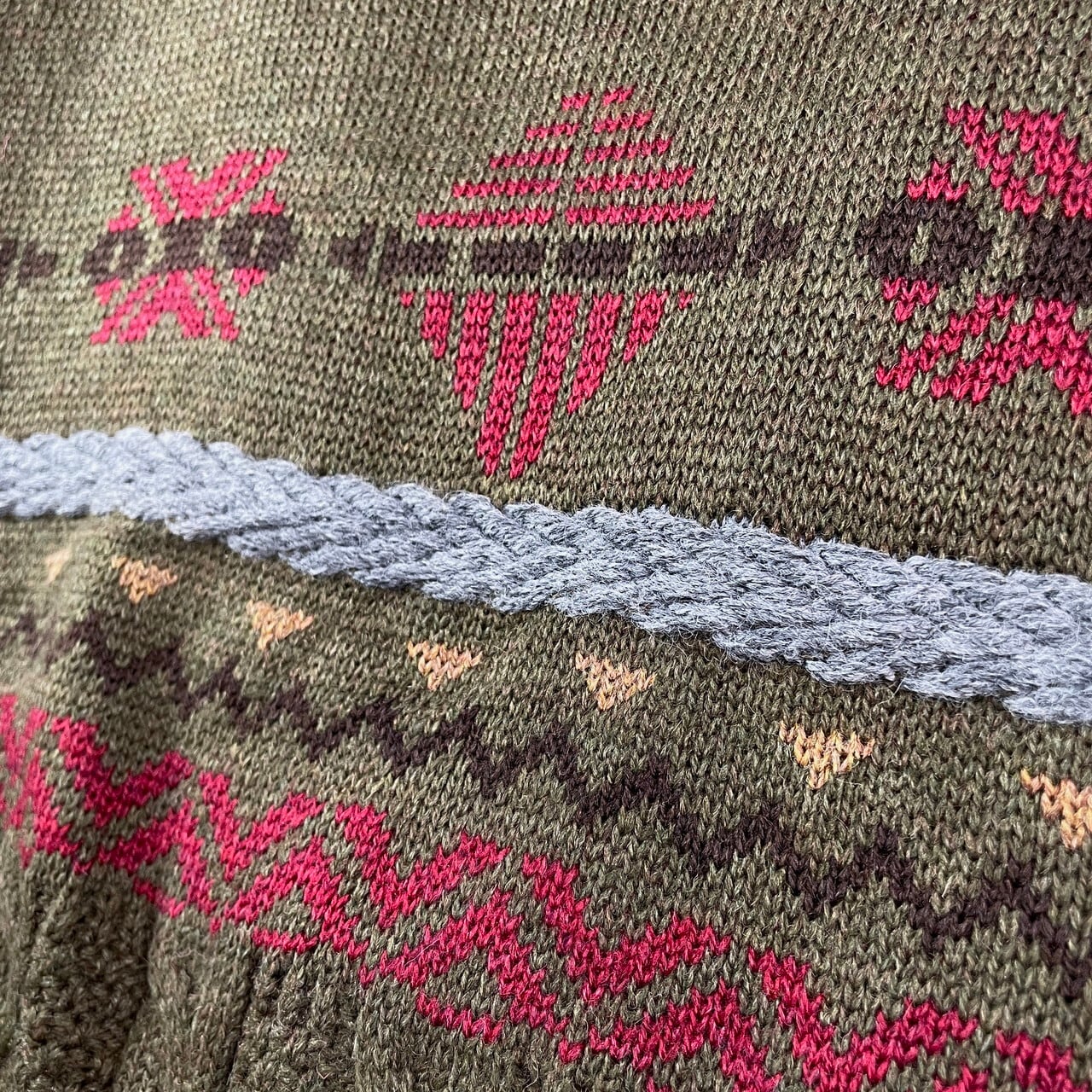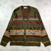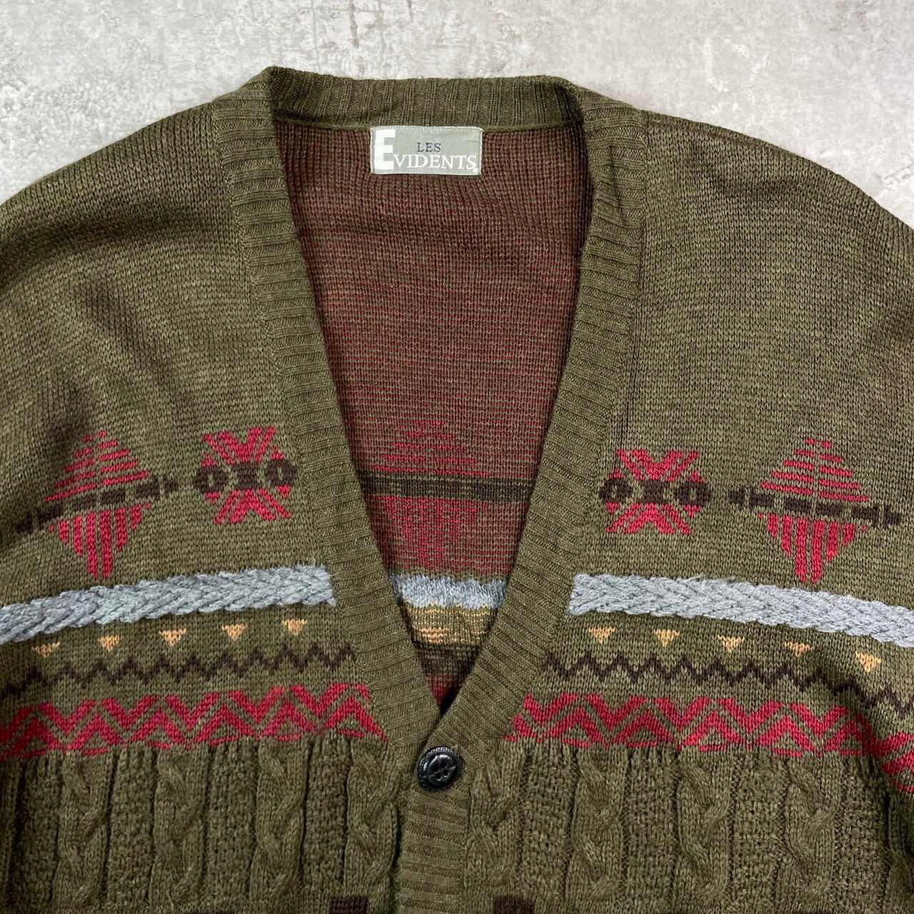 ■LES EVIDENTS ユーロ ヴィンテージ 総柄 ウールニットカーディガン メンズXL 古着 VINTAGE デザインニット【ニットセーター】/マルチカラー