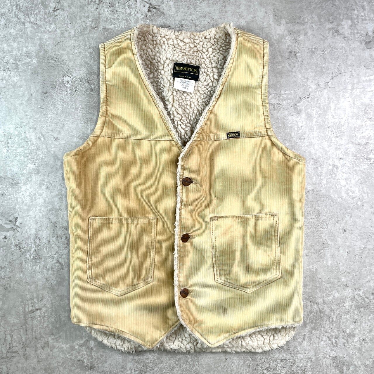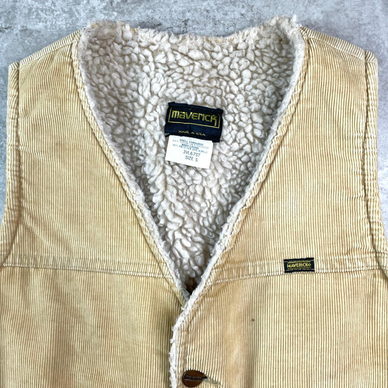 80年代 USA製 maverick マーベリック コーデュロイ 裏ボア ワークベスト レディースXS相当 古着 80s アメカジ ヴィンテージ VINTAGE 【ワークジャケット】/ベージュ