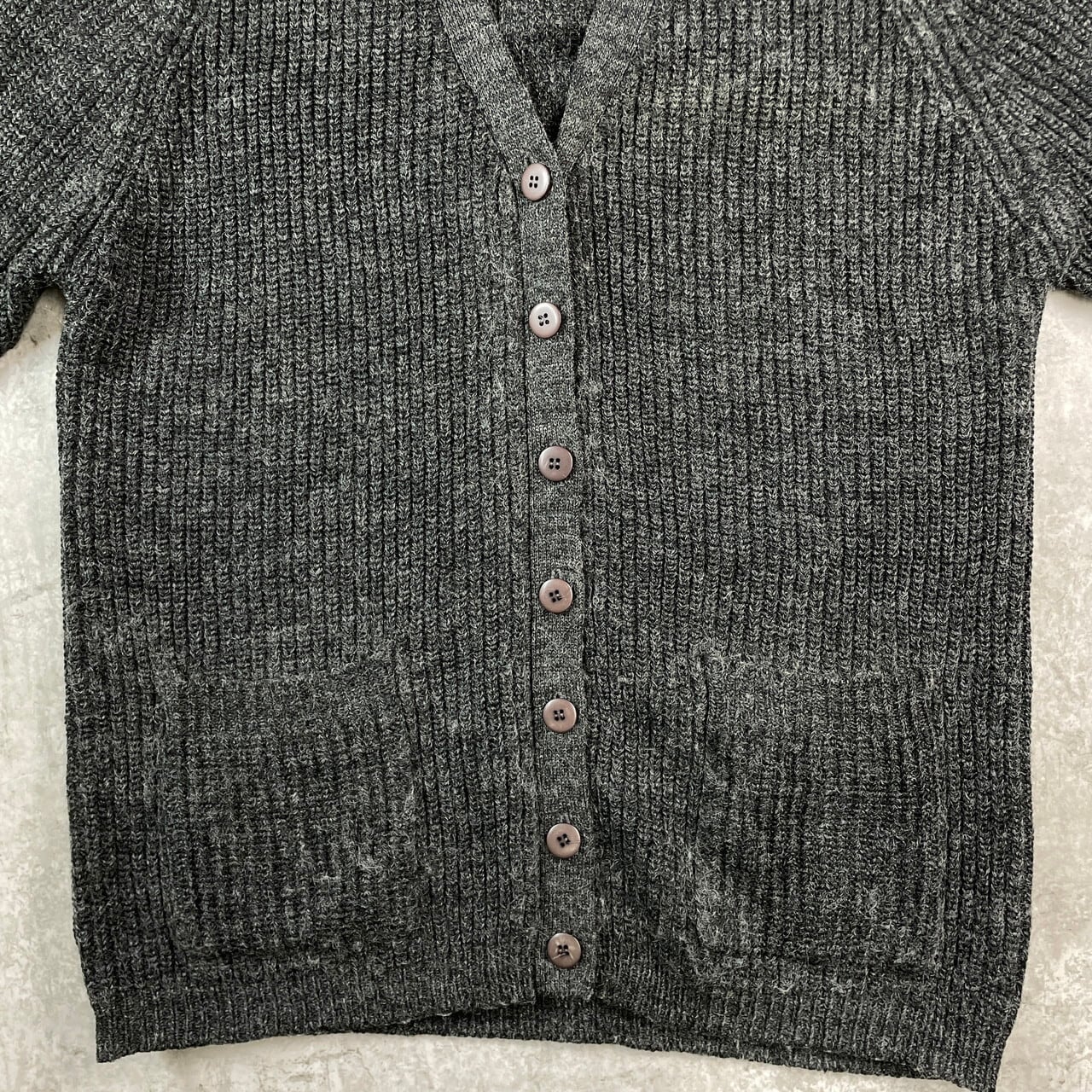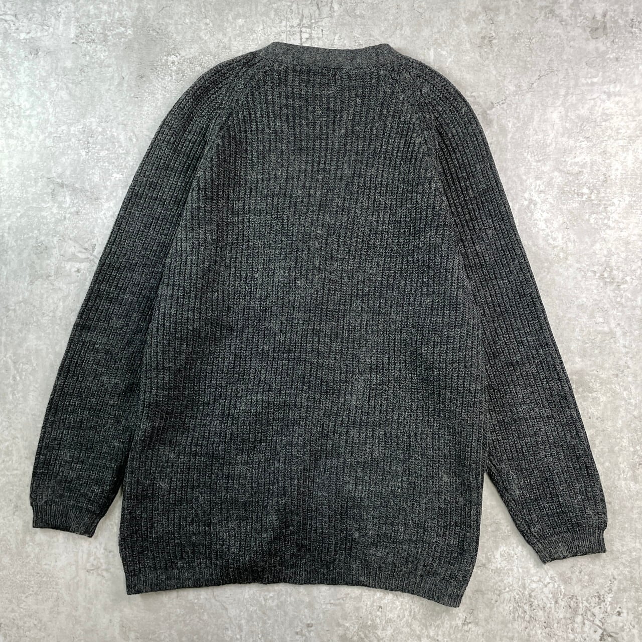 EXTRA EDITIONS ヴィンテージ アクリルニットカーディガン メンズL相当 レディースXL相当 古着 VINTAGE ダークグレー 墨黒【ニットセーター】/グレー