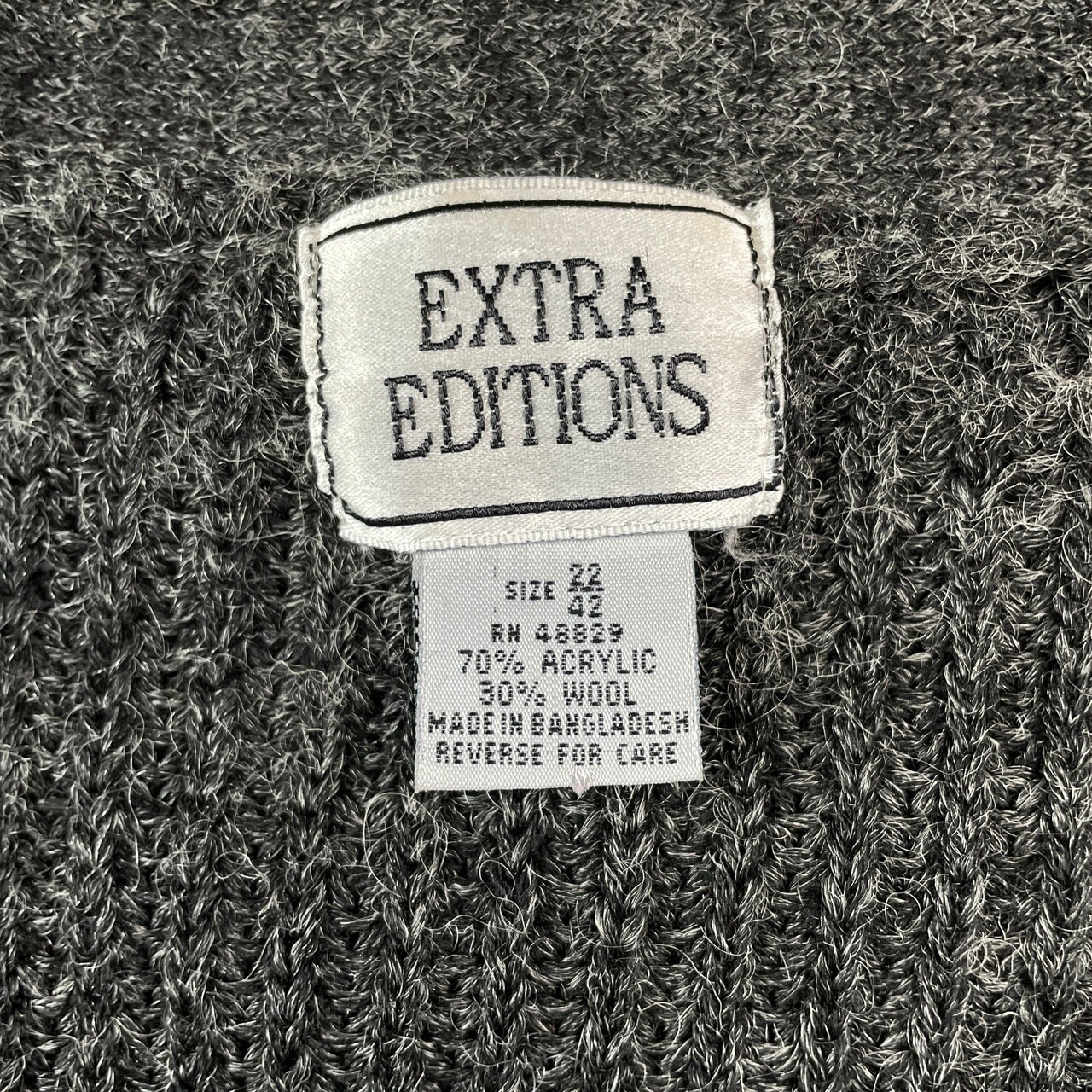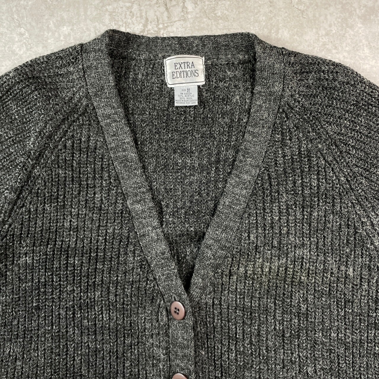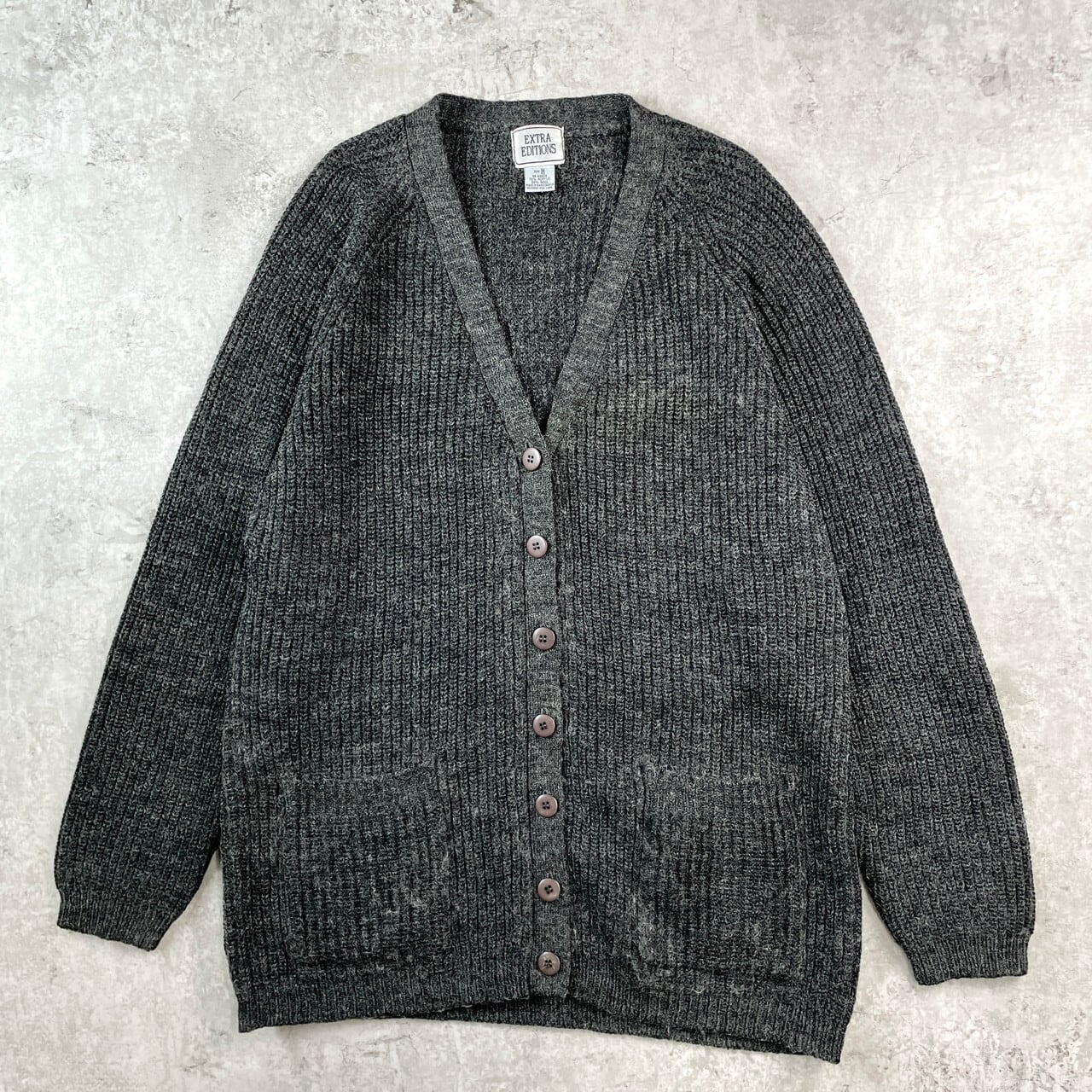 ■EXTRA EDITIONS ヴィンテージ アクリルニットカーディガン メンズL相当 レディースXL相当 古着 VINTAGE ダークグレー 墨黒【ニットセーター】/グレー