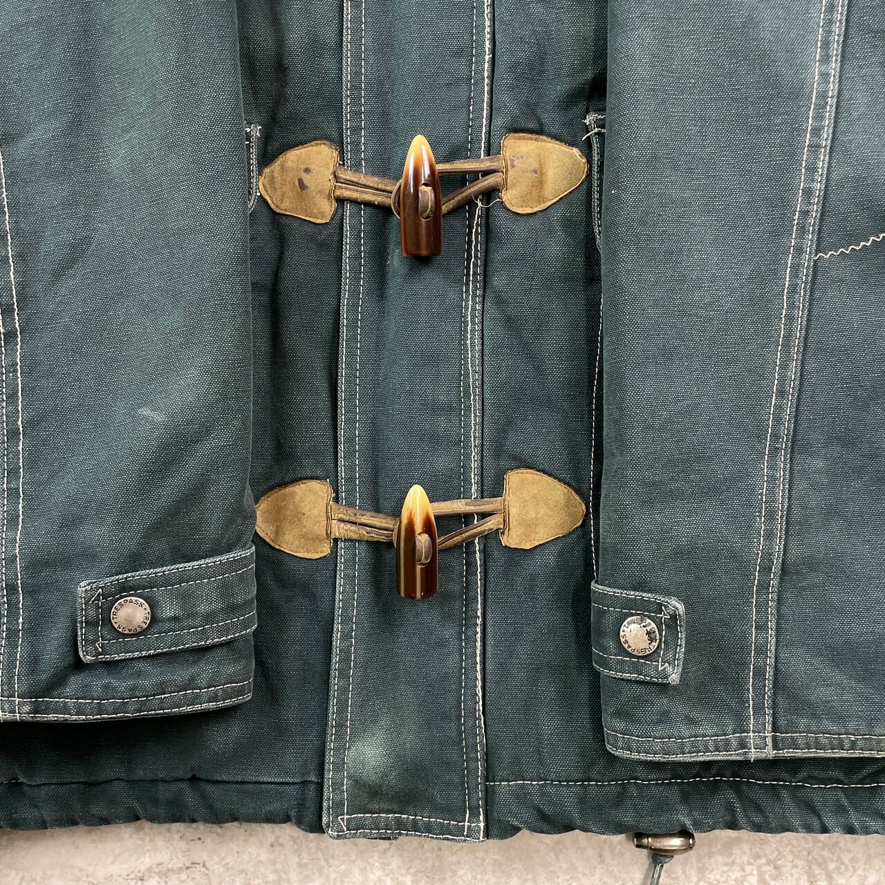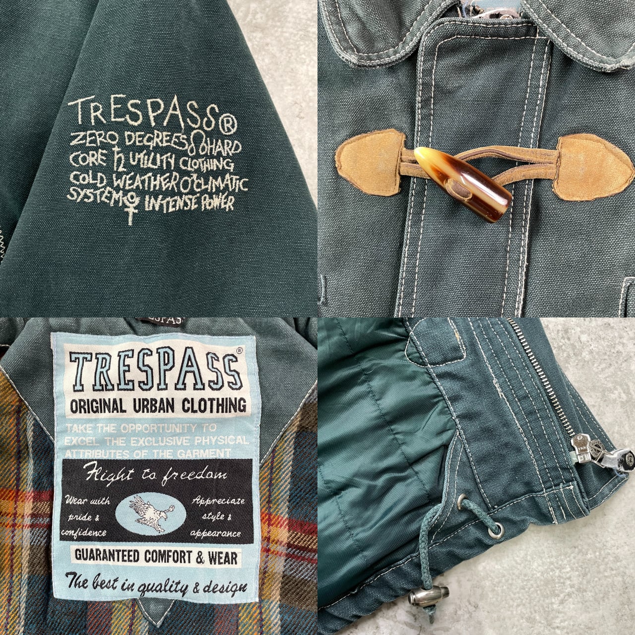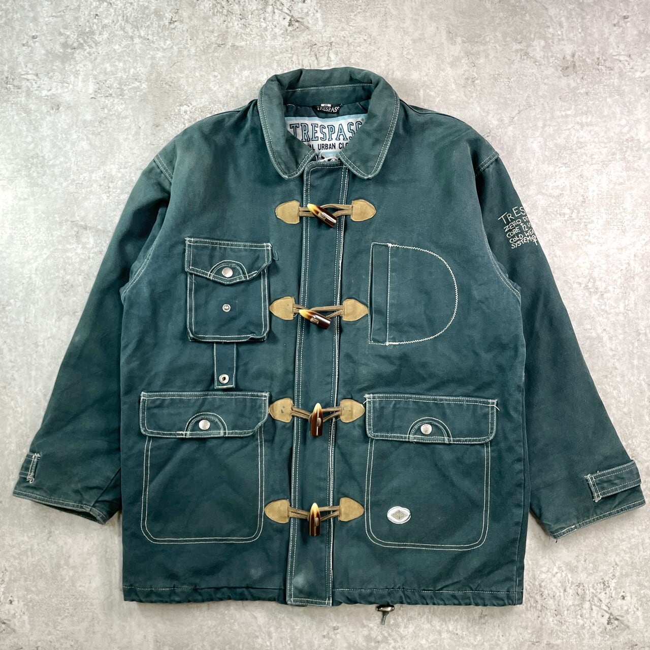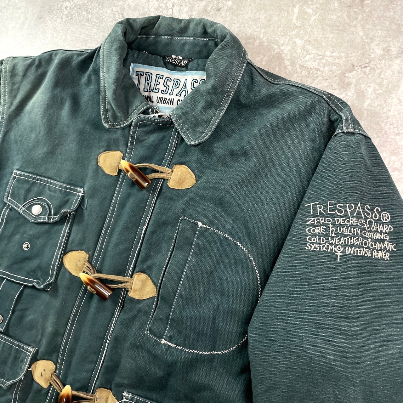 ■TRESPASS デザイン ダックジャケット メンズL相当 古着 トグルボタン 緑【ワークジャケット】/グリーン