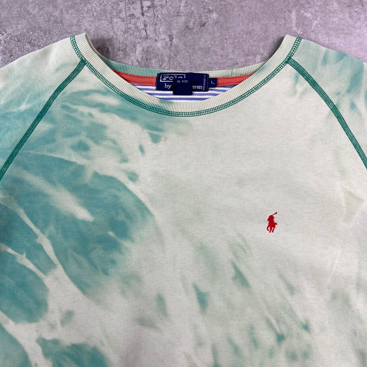 ■90年代 Polo by Ralph Lauren ポロバイラルフローレン タイダイ スウェットシャツ メンズXL相当 古着 90s ヴィンテージ VINTAGE クルーネック トレーナー ワンポイントロゴ刺繍 ライトグリーン 黄緑【スウェット】/グリーン