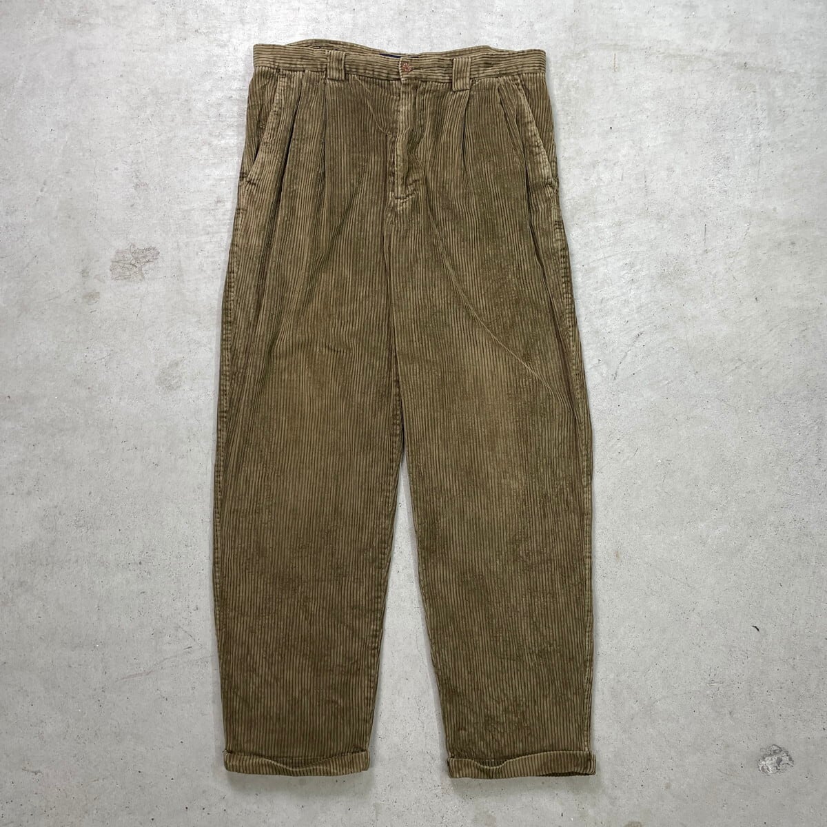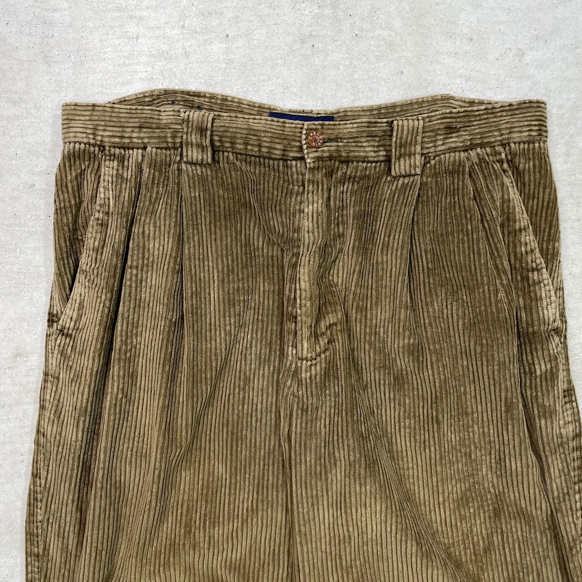 CHERESKIN カーキ コーデュロイパンツ 2タック 太畝 メンズW36 古着 フェードカーキ【コーデュロイパンツ】/カーキグリーン