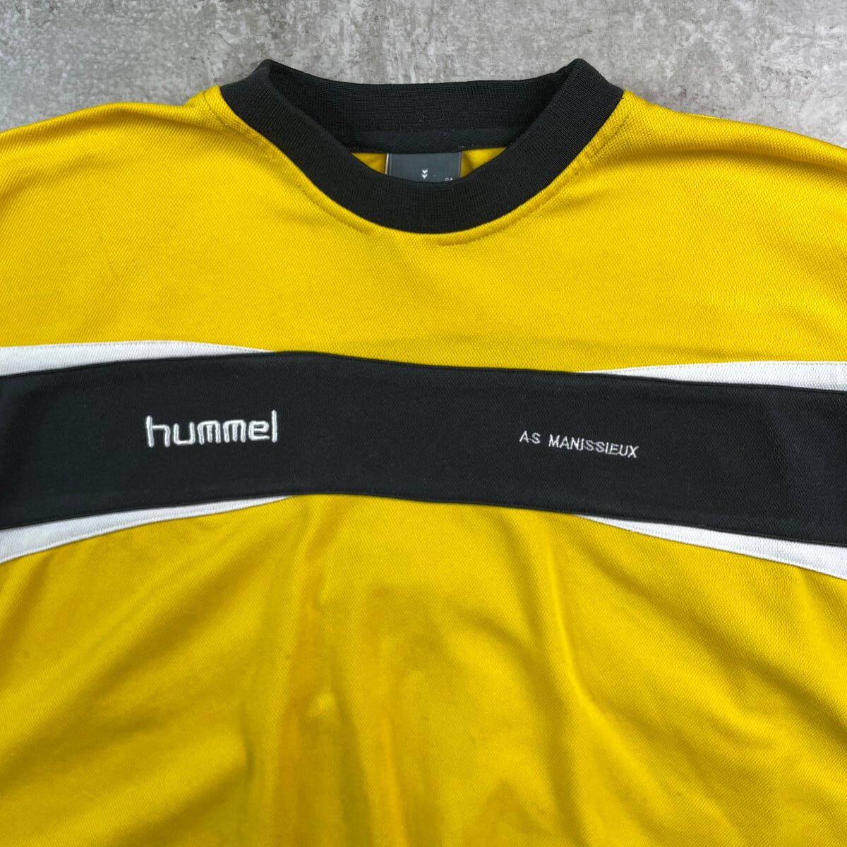 ■hummel ヒュンメル ロゴ刺繡 切り替え スウェットシャツ メンズ2XL相当 古着 スポーツ ビッグサイズ 大きいサイズ イエロー×ブラック【スウェット】/マルチカラー