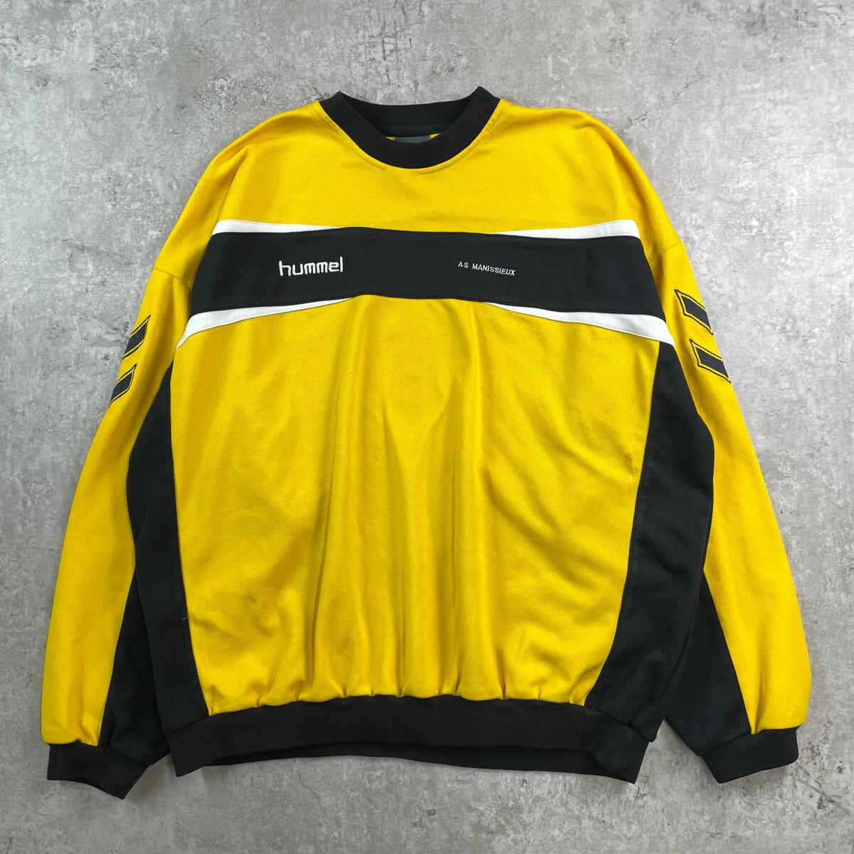 hummel ヒュンメル ロゴ刺繡 切り替え スウェットシャツ メンズ2XL相当 古着 スポーツ ビッグサイズ 大きいサイズ イエロー×ブラック【スウェット】/マルチカラー