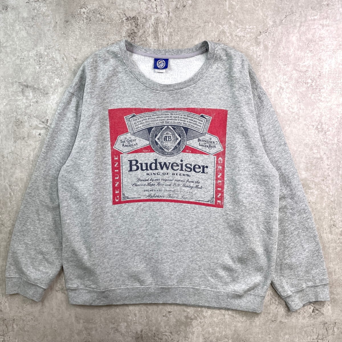 BUDWEISER バドワイザー 企業ロゴプリント スウェットシャツ メンズXL 古着 アメカジ KING OF BEERS ビール 裏起毛 灰色【スウェット】/グレー