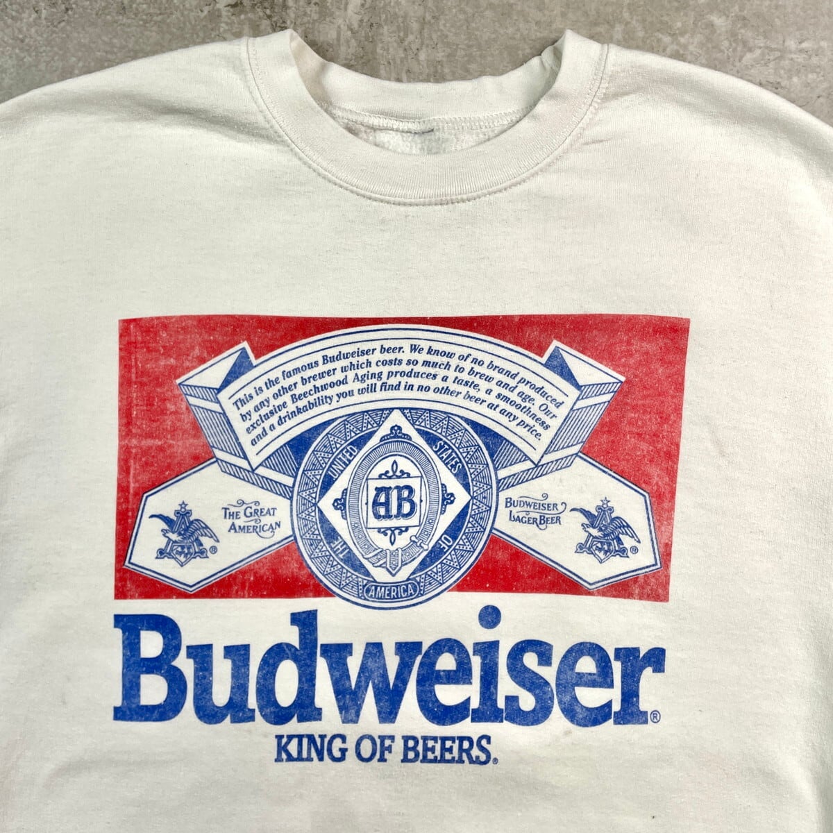BUDWEISER バドワイザー 企業ロゴプリント スウェットシャツ メンズM 古着 アメカジ KING OF BEERS ビール 裏起毛 白色【スウェット】/ホワイト