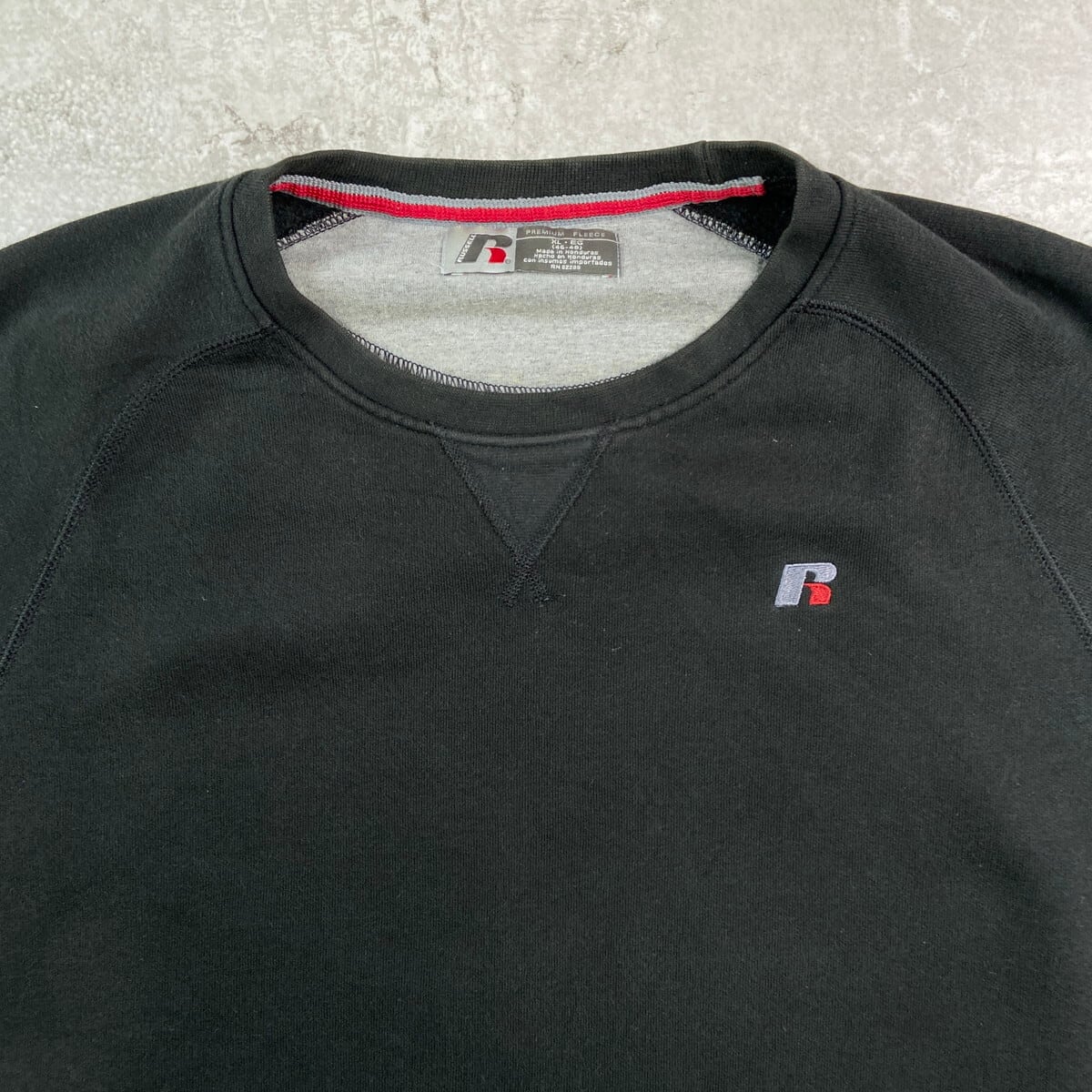 00年代 RUSSELL ATHLETIC ラッセル アスレチックス ワンポイントロゴ刺繍 スウェットシャツ メンズXL 古着 00s ヴィンテージ VINTAGE Y2K アメカジ トレーナー ラグランスリーブ リバースタイプ 黒色【スウェット】/ブラック