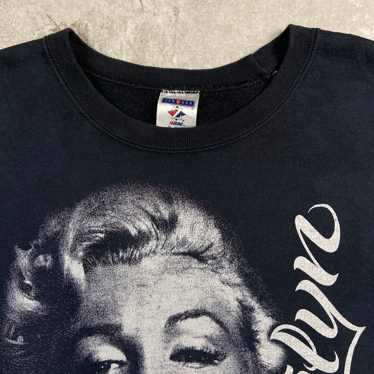 00年代 MARILYN MONROE マリリン モンロー 偉人 プリント スウェットシャツ メンズXL 古着 映画 ムービー 人物 黒【スウェット】/ブラック