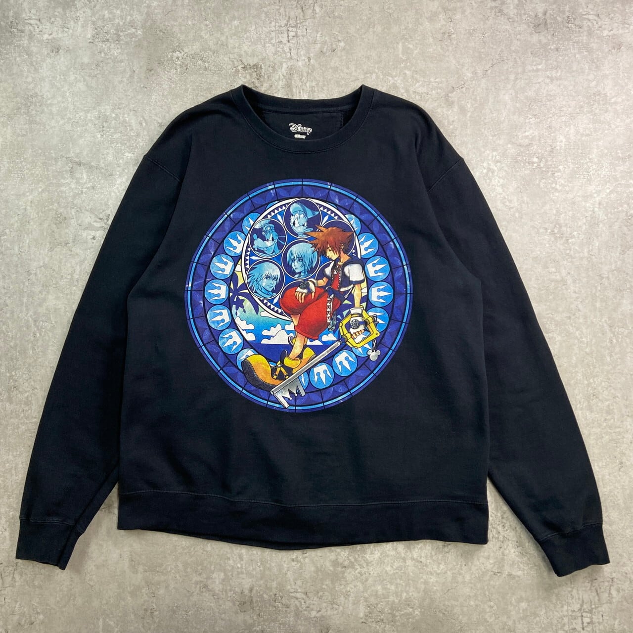 DISNEY ディズニー KINGDOM HEARTS キングダムハーツ キャラクタープリント スウェットシャツ メンズXL相当 古着 ゲーム 黒【スウェット】/ブラック