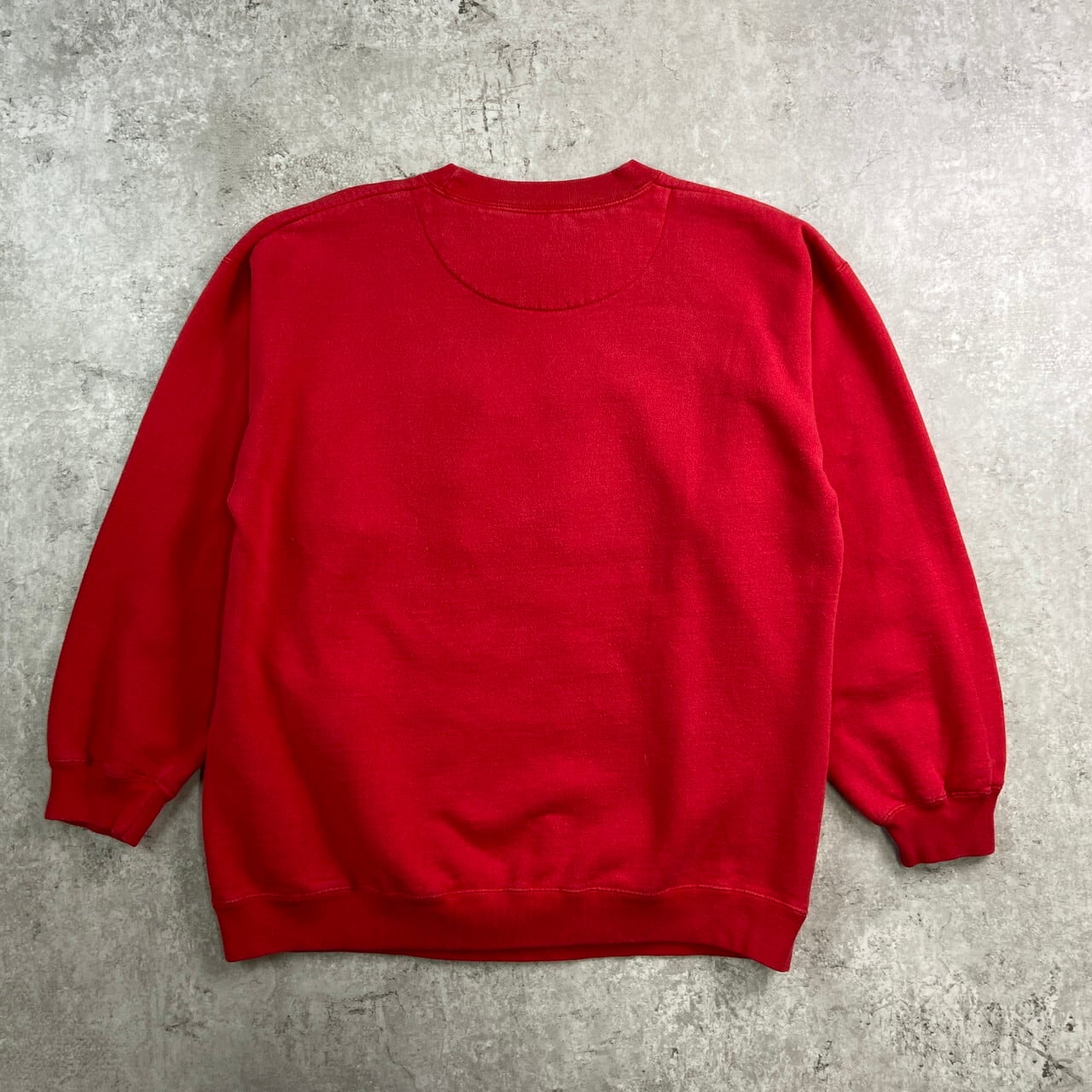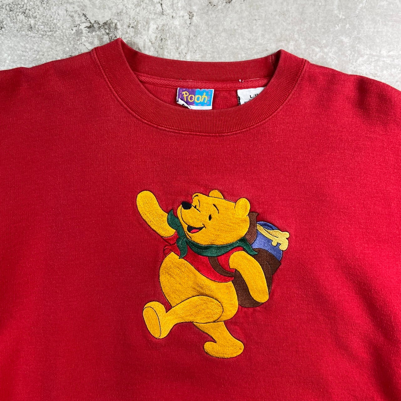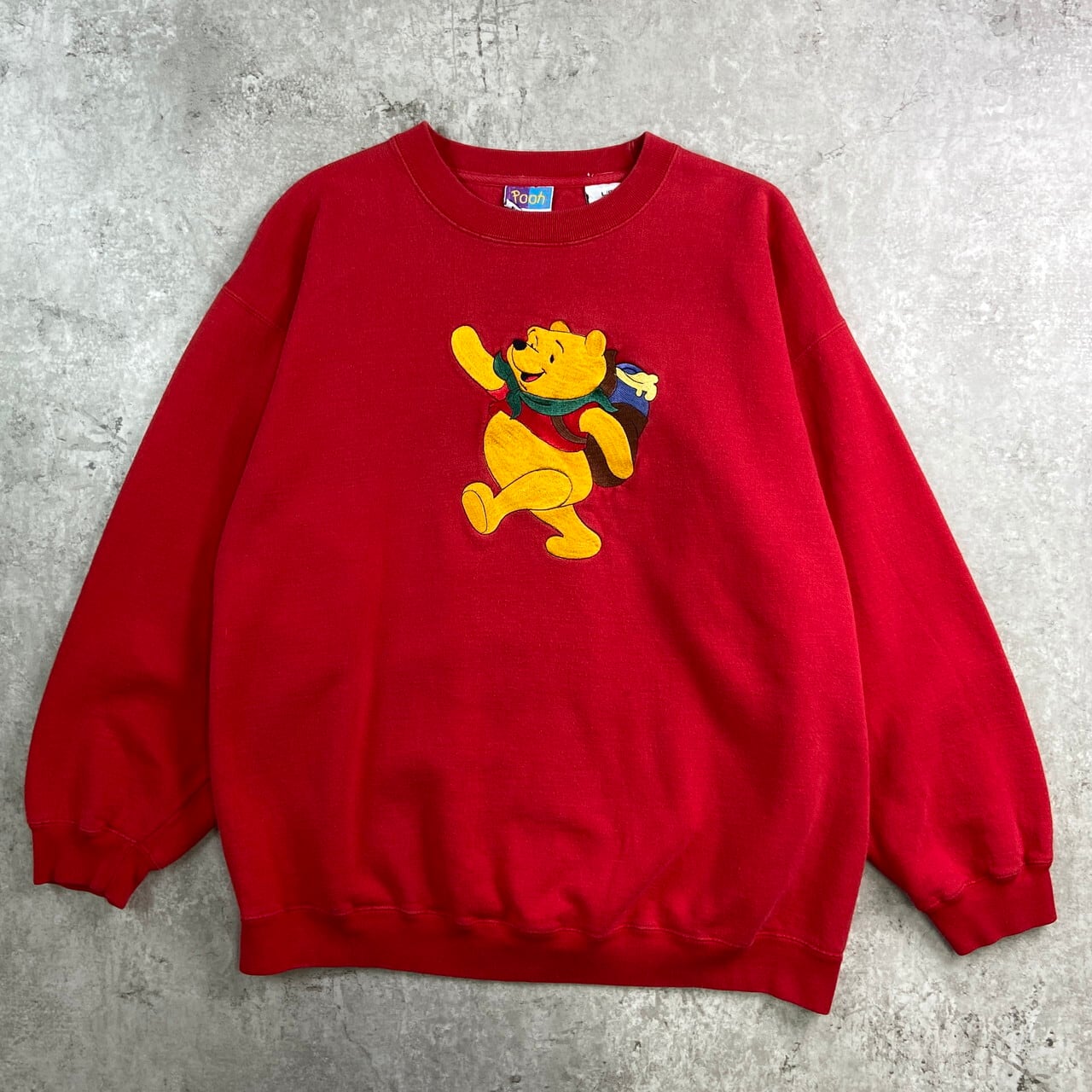 90年代 Pooh ディズニー くまのプーさん キャラクター刺繍 スウェットシャツ レディースL 古着 90s VINTAGE ヴィンテージ DISNEY トレーナー 赤【スウェット】/レッド