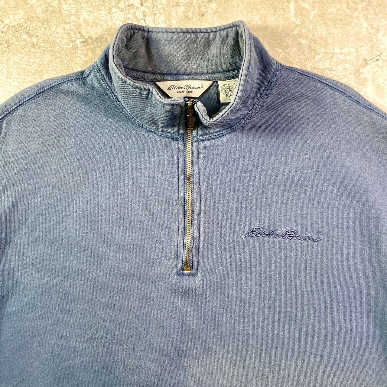 00年代 Eddie Bauer エディーバウアー ロゴ刺繍 ハーフジップ スウェットシャツ メンズL 古着 00s VINTAGE ヴィンテージ アメカジ アウトドア フェードネイビー【スウェット】/ネイビー