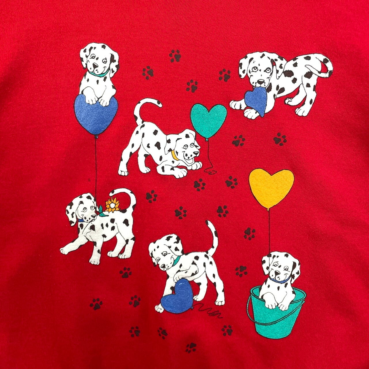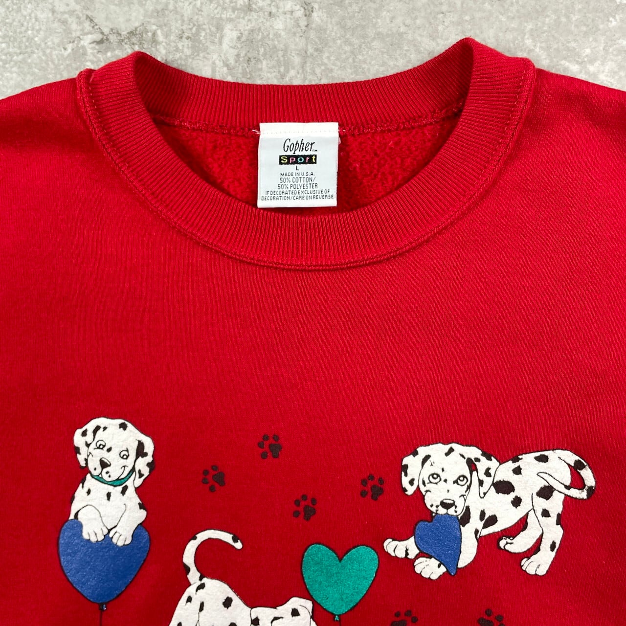 ■90年代 USA製 ダルメシアン アニマルプリント スウェットシャツ メンズL レディース 古着 90s ヴィンテージ VINTAGE トレーナー アメカジ イヌ 犬 ドッグ 赤【スウェット】/レッド