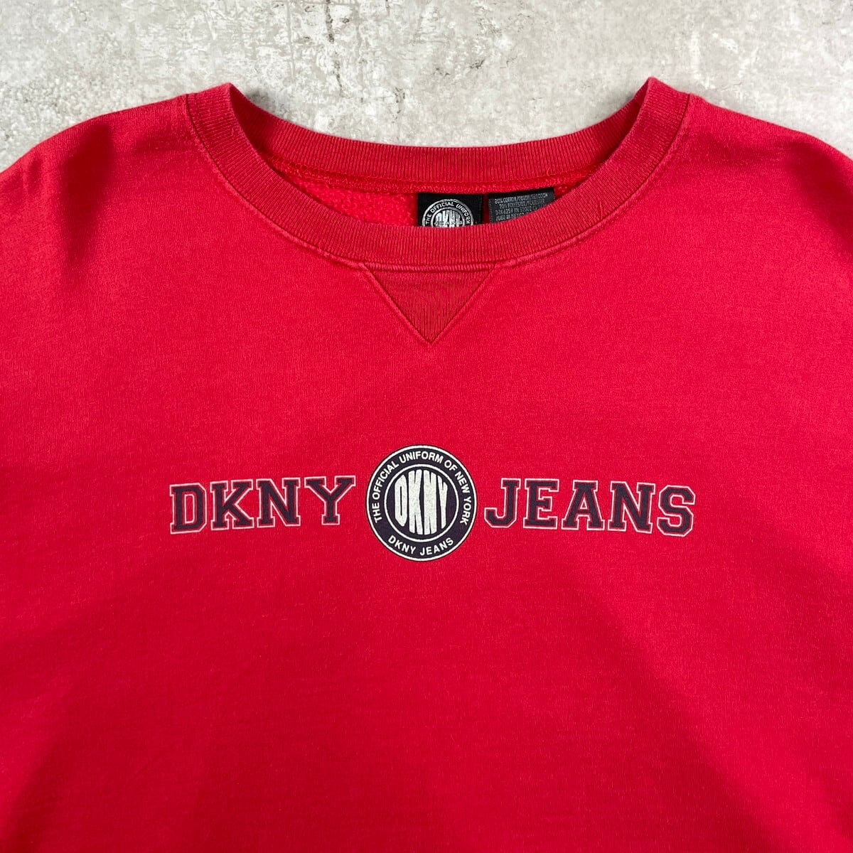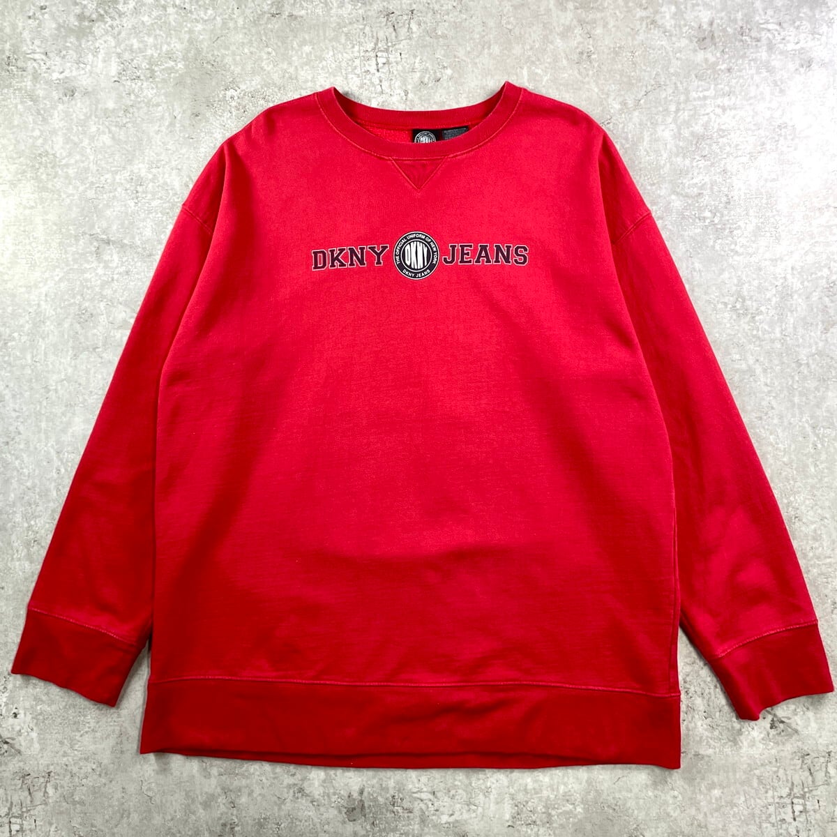 90年代 DKNY JEANS ダナキャランニューヨーク スウェットシャツ メンズXL相当 古着 90s ヴィンテージ VINTAGE 前Vガゼット 裏起毛 トレーナー 赤色【スウェット】/レッド