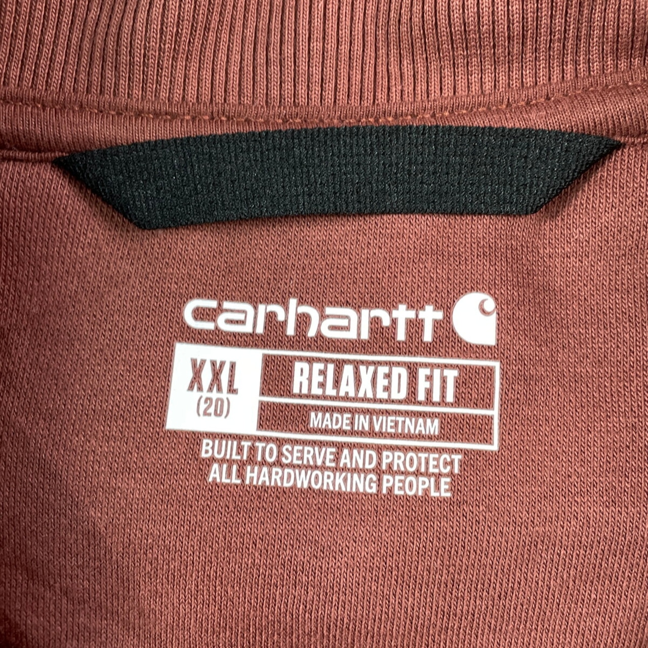 ■Carhartt カーハート ハーフジップ ワンポイントロゴ刺繍 メンズXL相当 古着 RELAXED FIT ハイネック 緋色【スウェット】/レッド